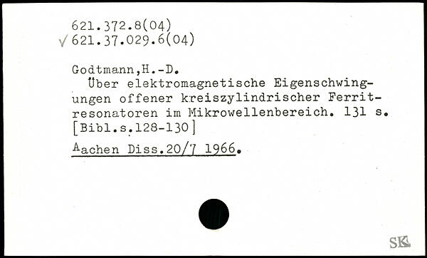 Uber elektromagnetische Eigenschwingungen offener kreiszylindrischer Ferritresonatoren im Mikrowellenbereich.