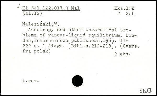 Azeotropy and other theoretical problems of vapour-liquid equilibrium.