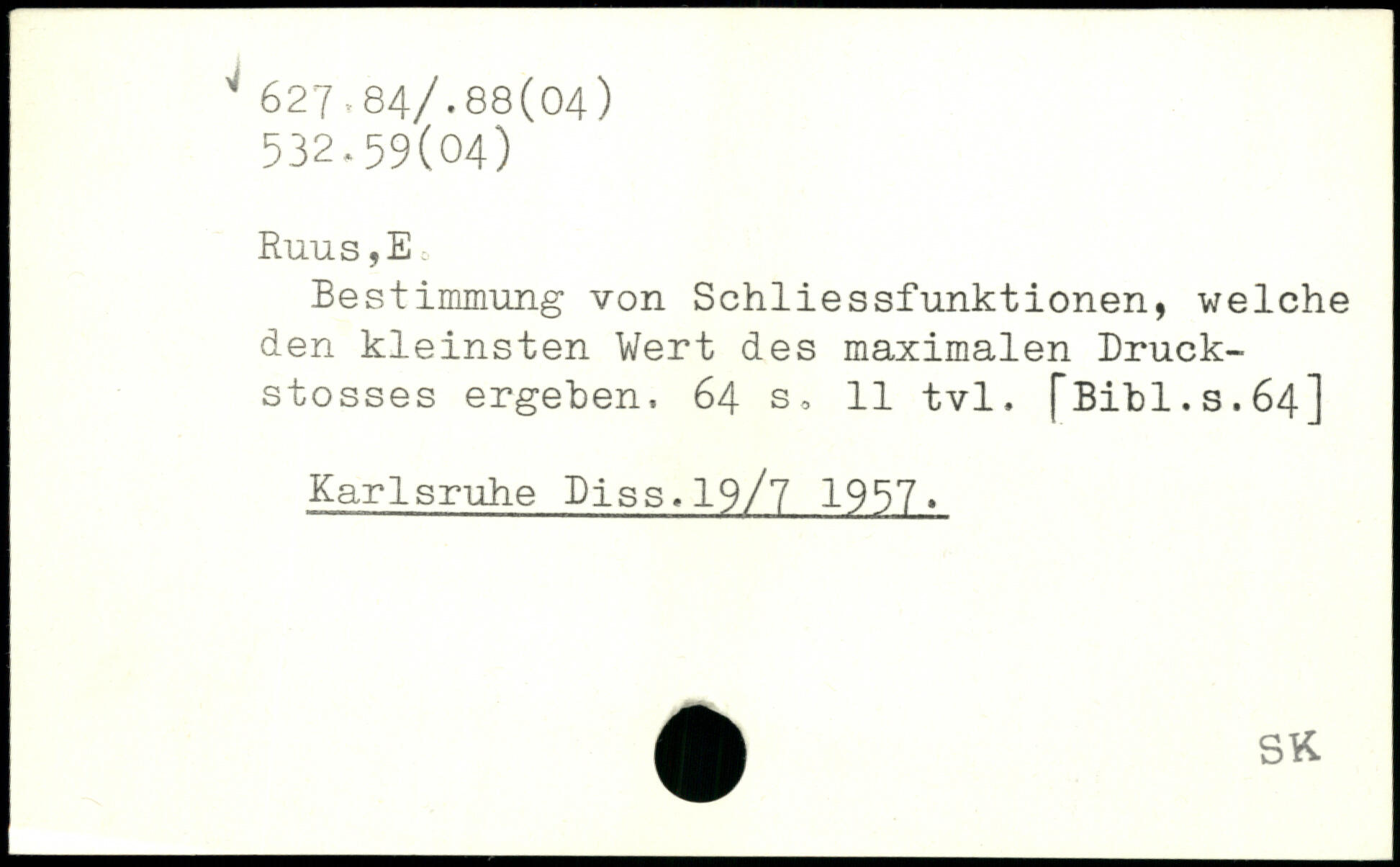 Bestimmung von Schliessfunktionen, welche den kleinsten Wert des maximalen Druck-stosses ergehen