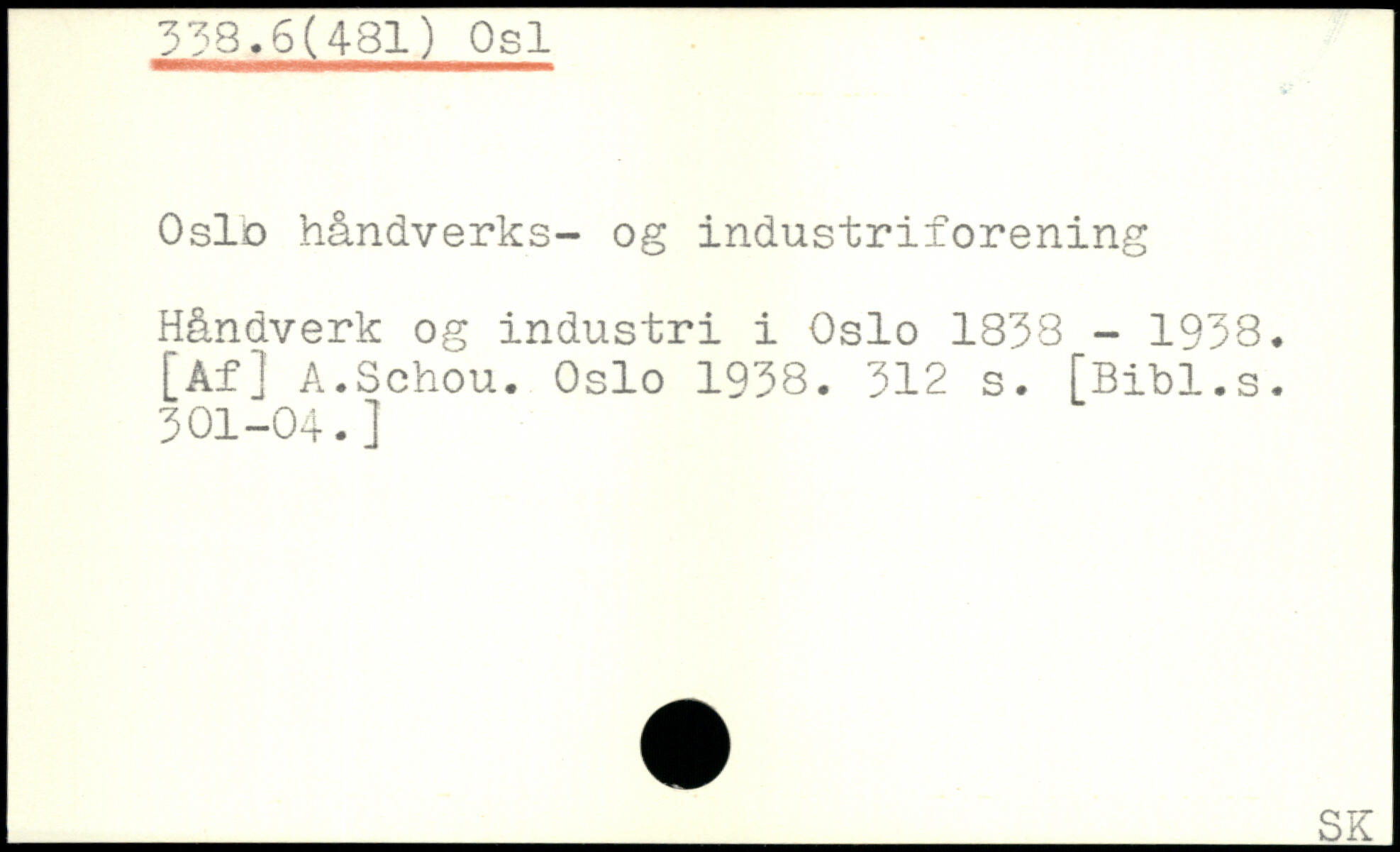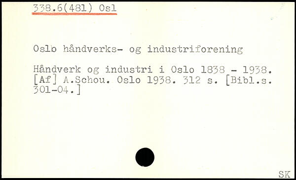 Oslo håndverks- og industriforening Håndverk og industri i Oslo 1833 - 1938. [Af] A.Sohou. Oslo 1938.