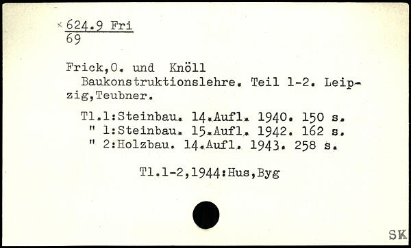 Baukonstruktionslehre. Teil 1-2. Leipzig, Teuhner. TI.1:Steinbau. 14.Auf1, 1940. I