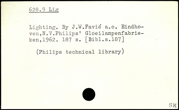 Lighting. By J.W.Favie a.o. Eindhoven, N.V.Philips’ Gloeilampenfabrie-ken,1962.