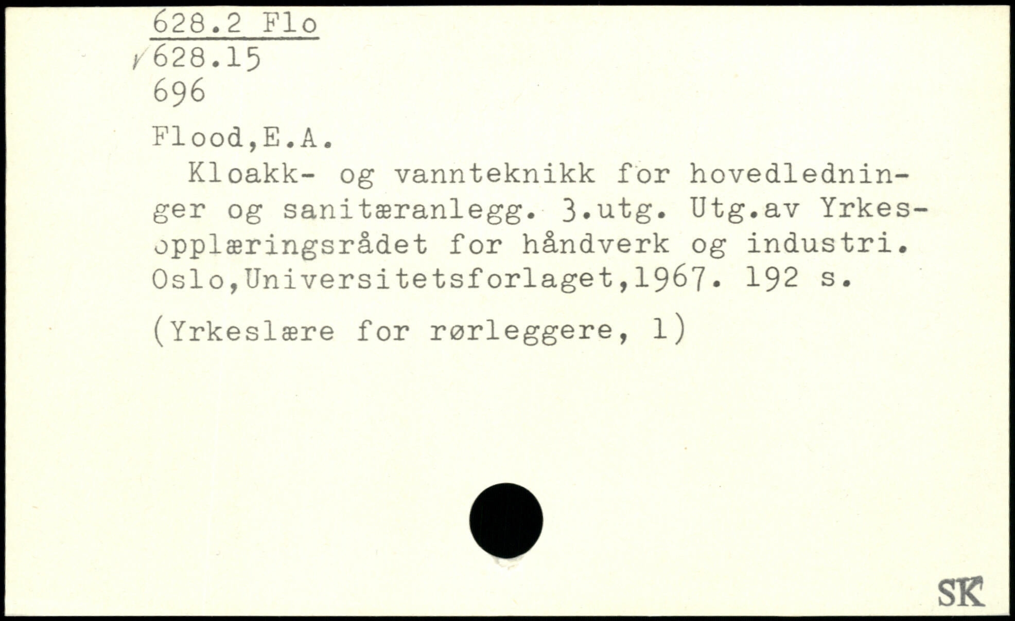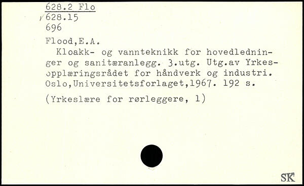Kloakk- og vannteknikk for hovedlednin-ger og sanitæranlegg. 3,utg. Utg.av Yrkes-opplæringsrådet for håndverk og industri.