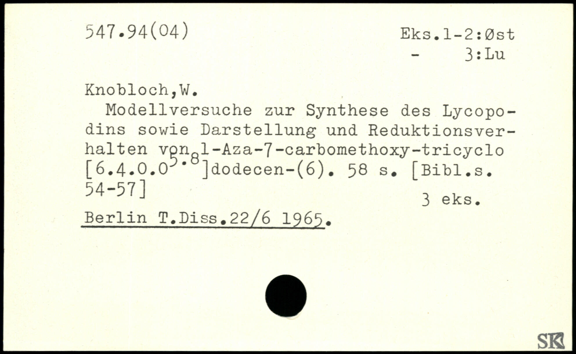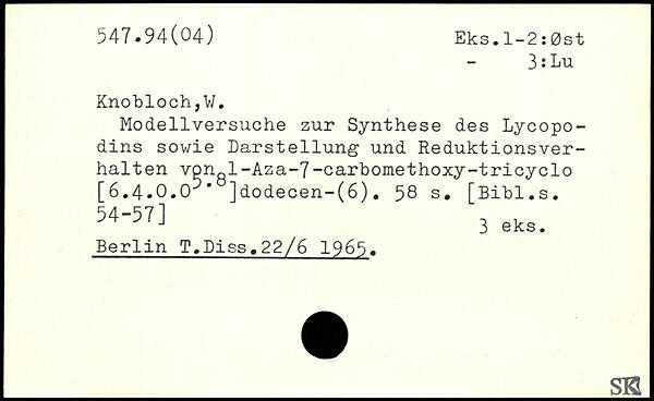 Modellversuche zur Synthese des Lycopo-dins sowie Darstellung und Reduktionsverhalten vpn,l-Aza-7-carbomethoxy-tricyclo [6.4.0.0^. ]dodecen-(6).