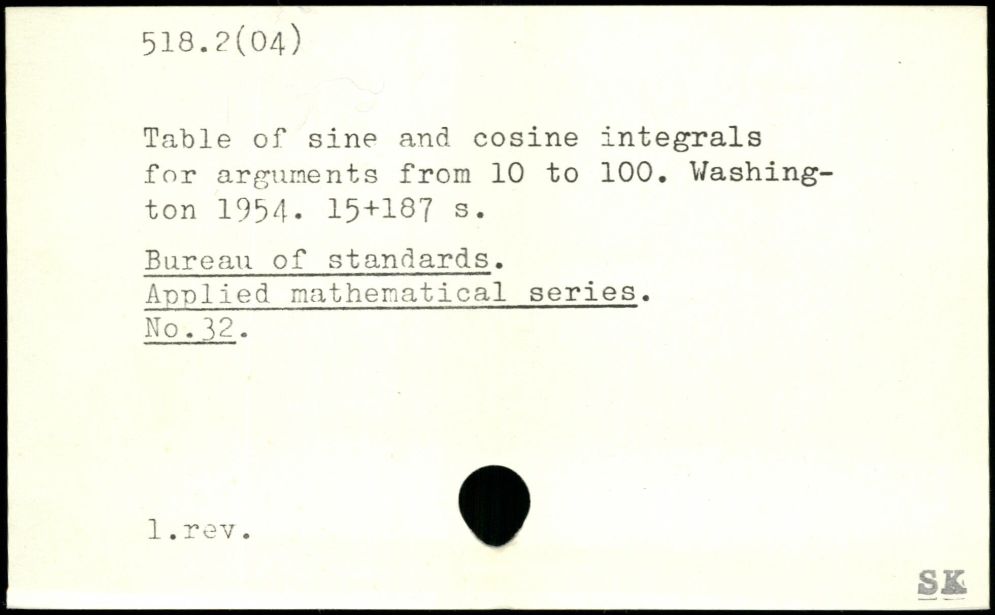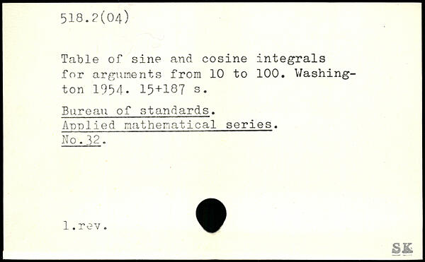 Table of sine and cosine integrals for arguments from 10 to 100.