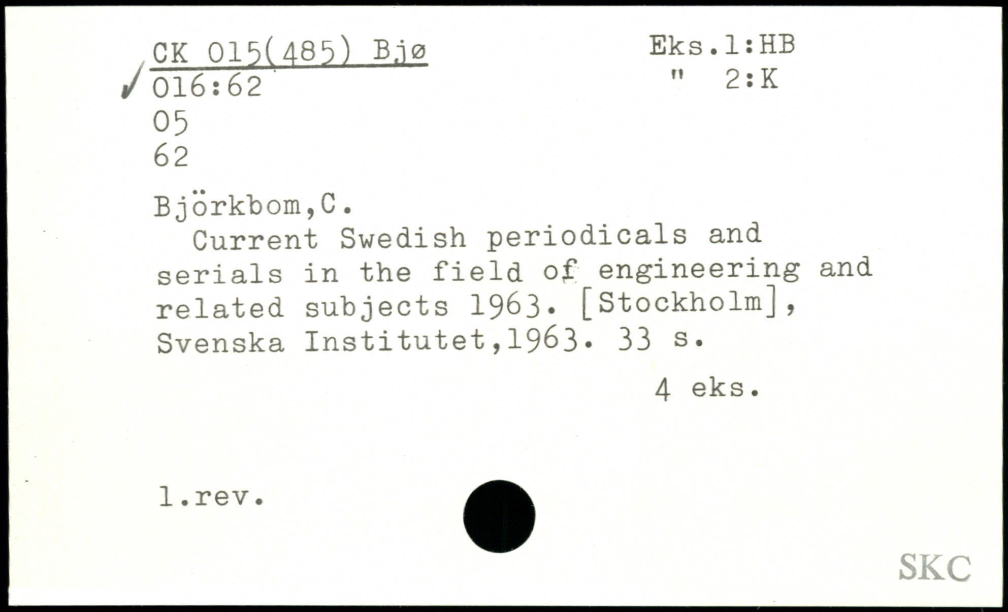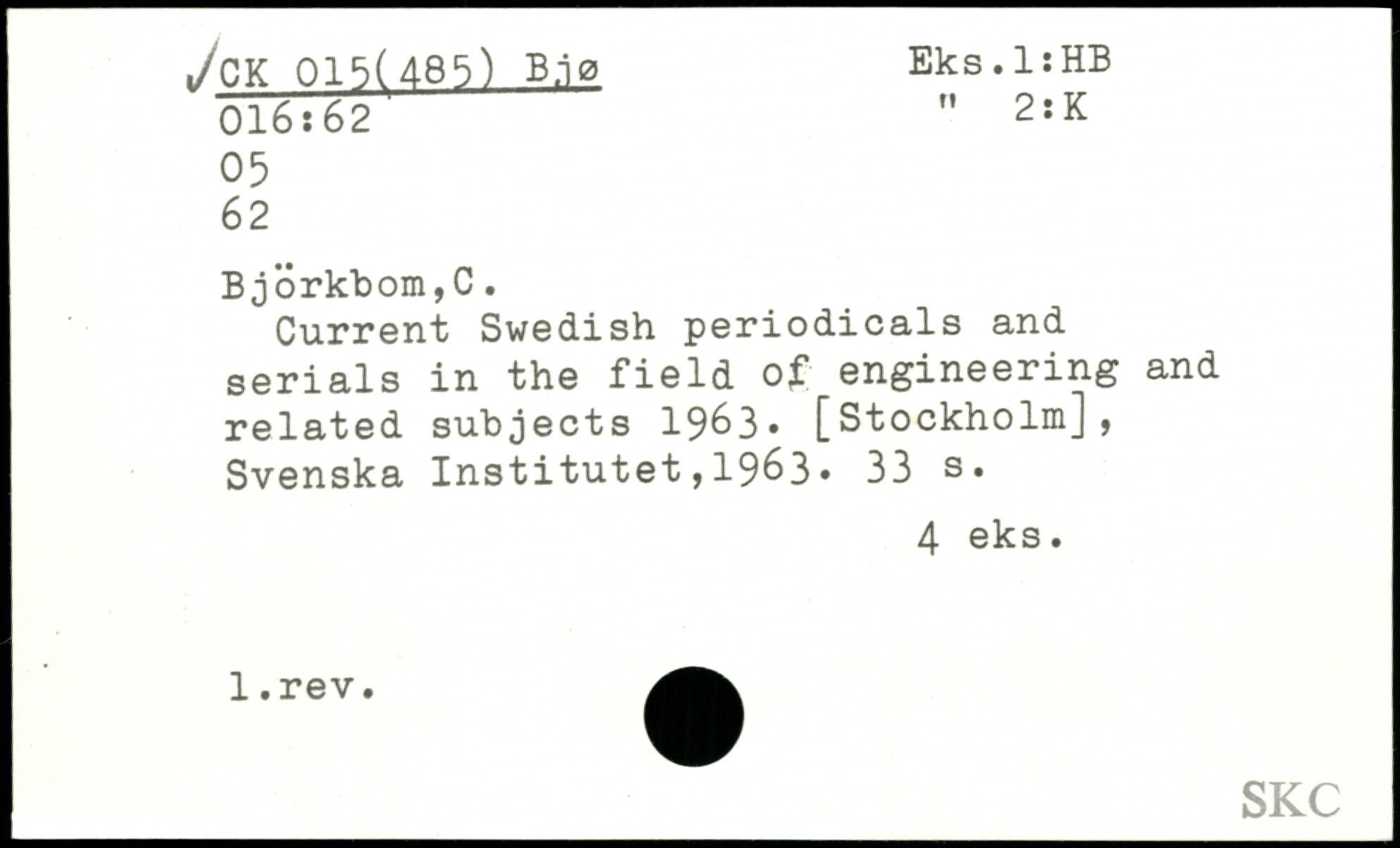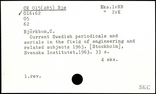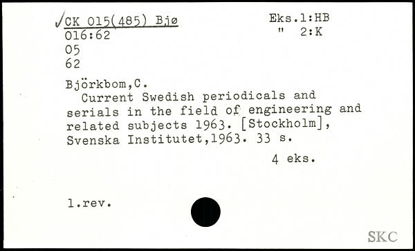 Current Swedish periodicals and serials in the field of engineering and related subjects 1963, [Stockholm], Svenska Institutet,1963.