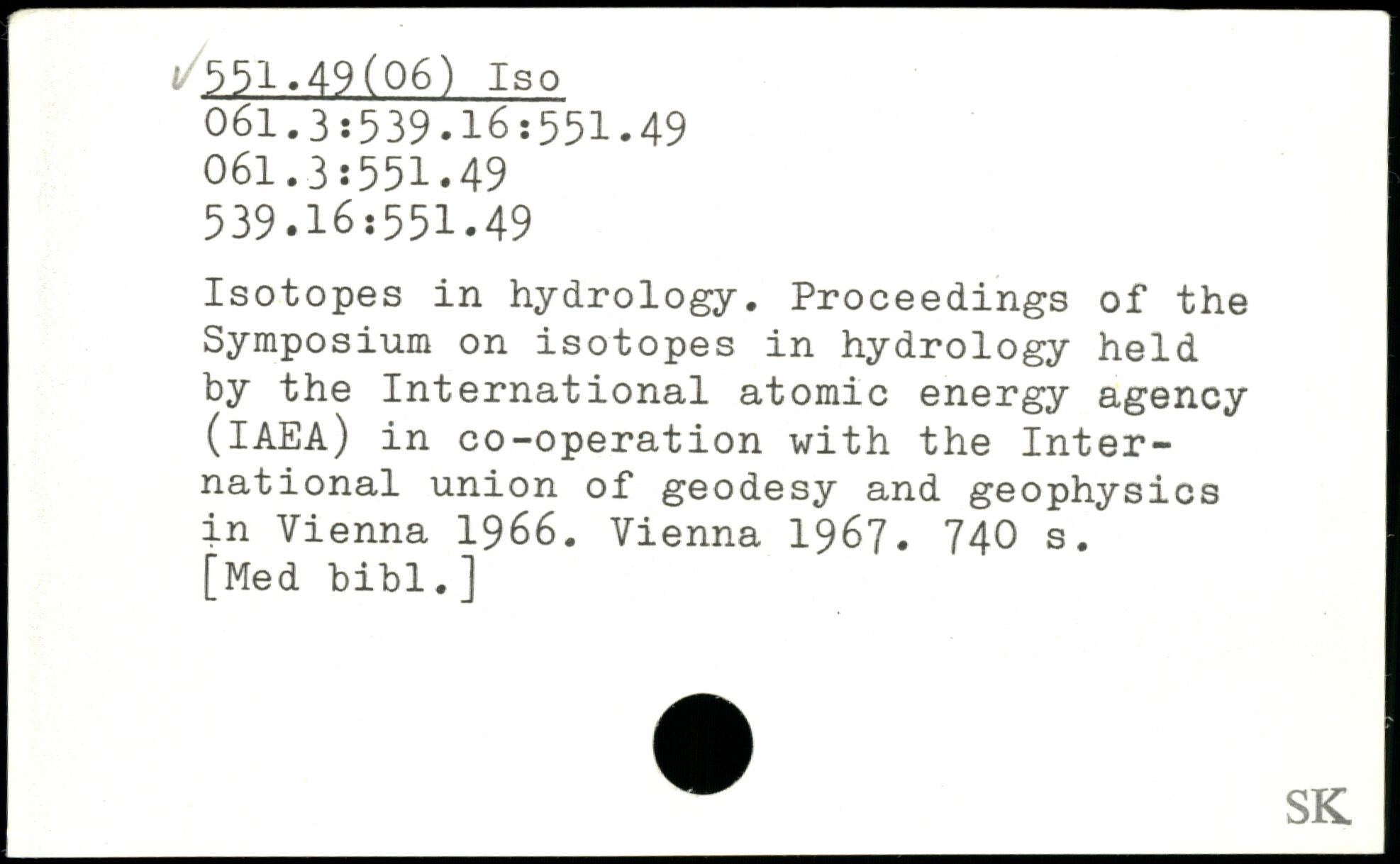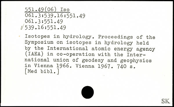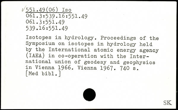Isotopes in hydrology. Proceedings of the Symposium on isotopes in hydrology held by the International atomic energy agency (IAEA) in co-operation with the International union of geodesy and geophysics in Vienna 1966. Vienna 1967.