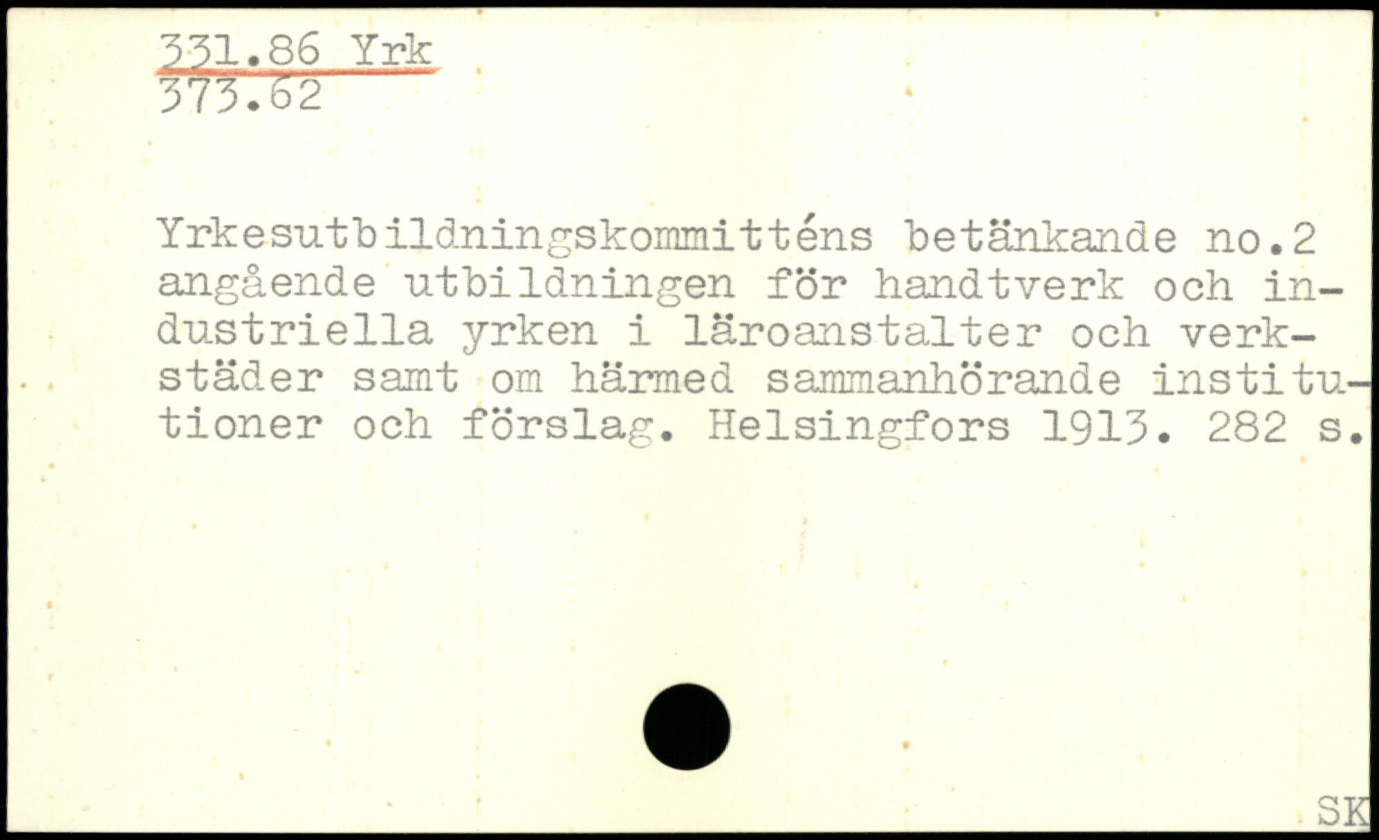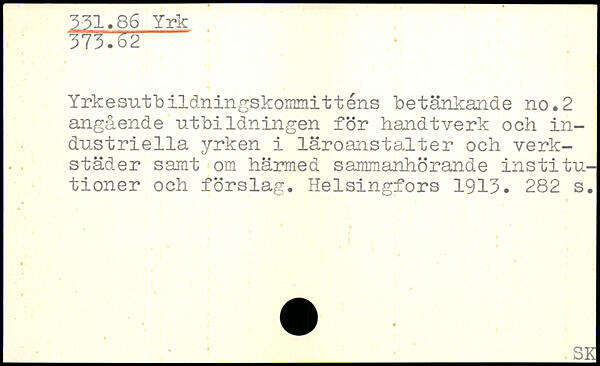 Yrkesutbildningskommitténs betänkande no.2 angående utbildningen för handtverk och industriella yrken i läroanstalter och verkstäder samt om härmed sammanhörande institutioner och förslag.