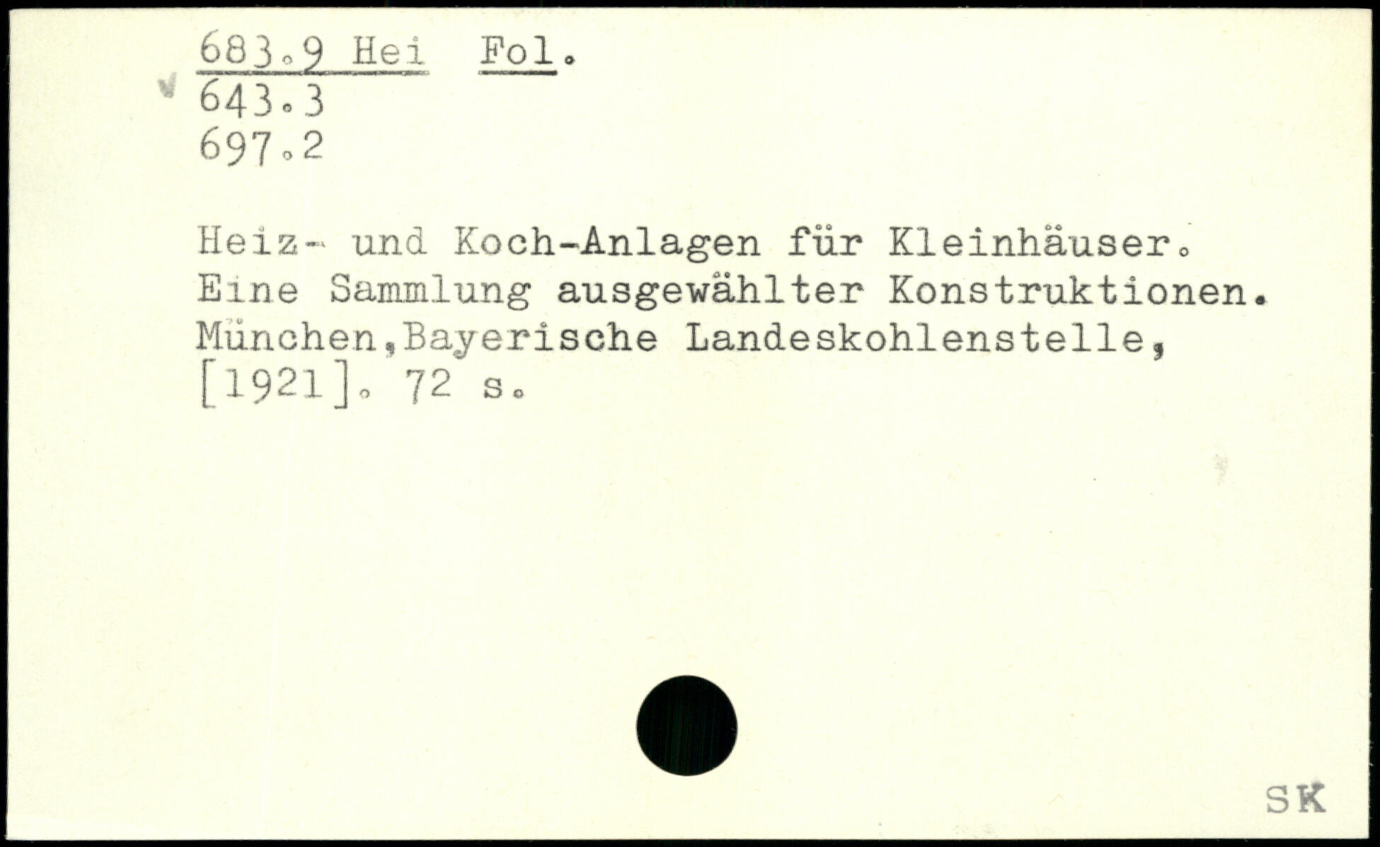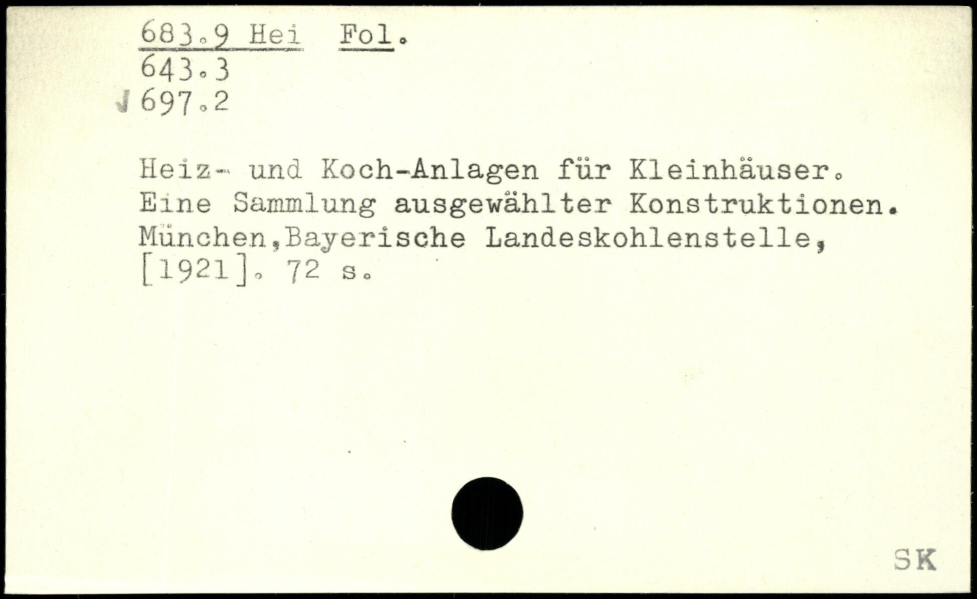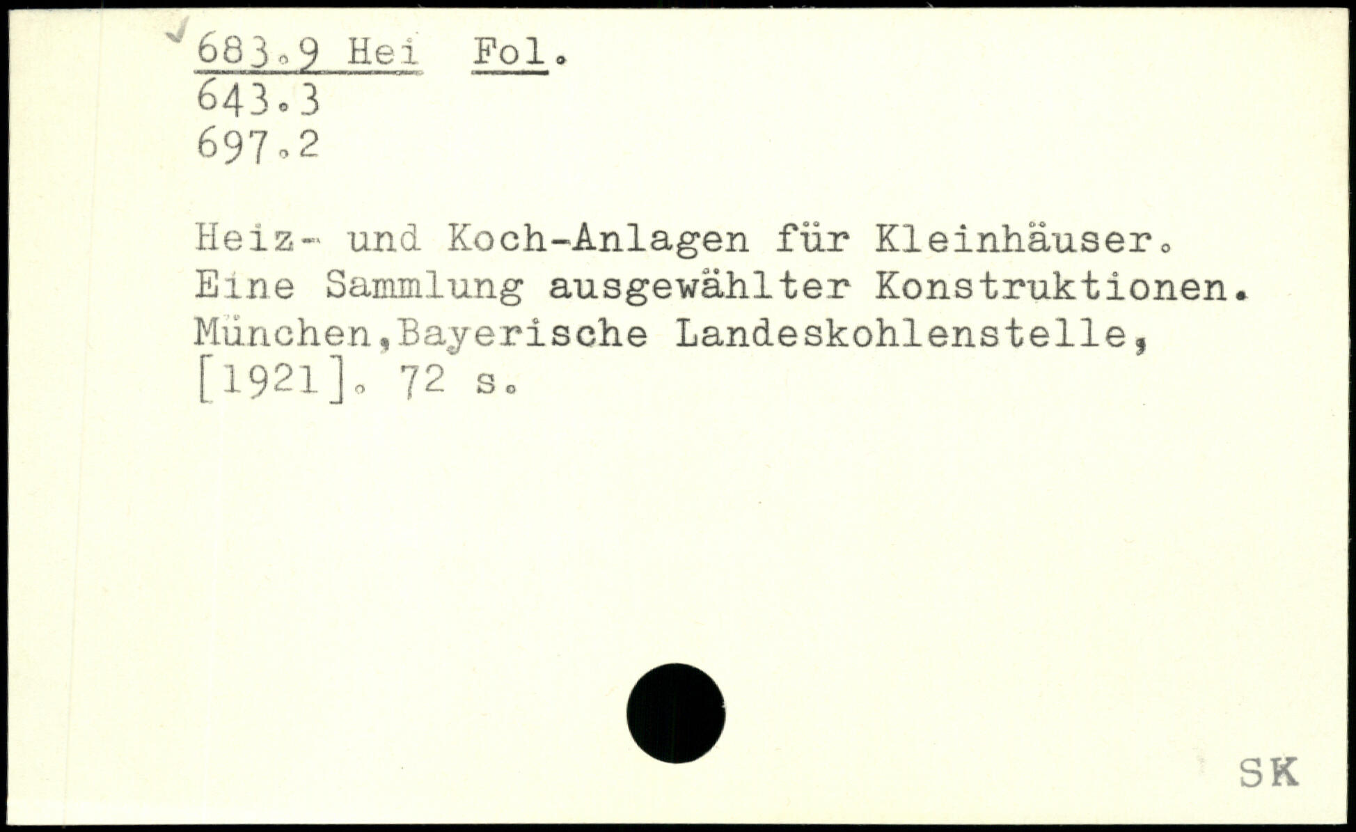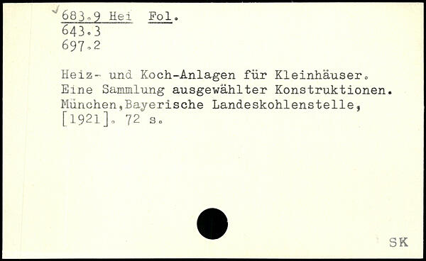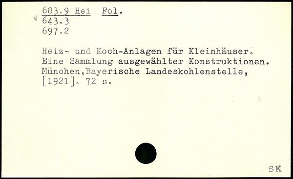 Heiz- und Koch-Anlagen für Kleinhäuser,, Eine Sammlung ausgewählter Konstruktionen. München,Bayerische Landeskohlenstelle,