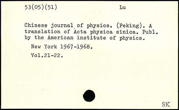 Chinese journal of physics, (Peking), A translation of Acta physica sinica, Puhl, by the American institute of physics.