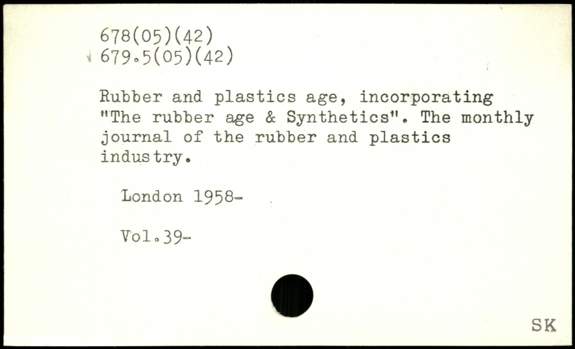 Rubber and plastics age, incorporating "The rubber age & Synthetics". The monthly journal of the rubber and plastics indus try.