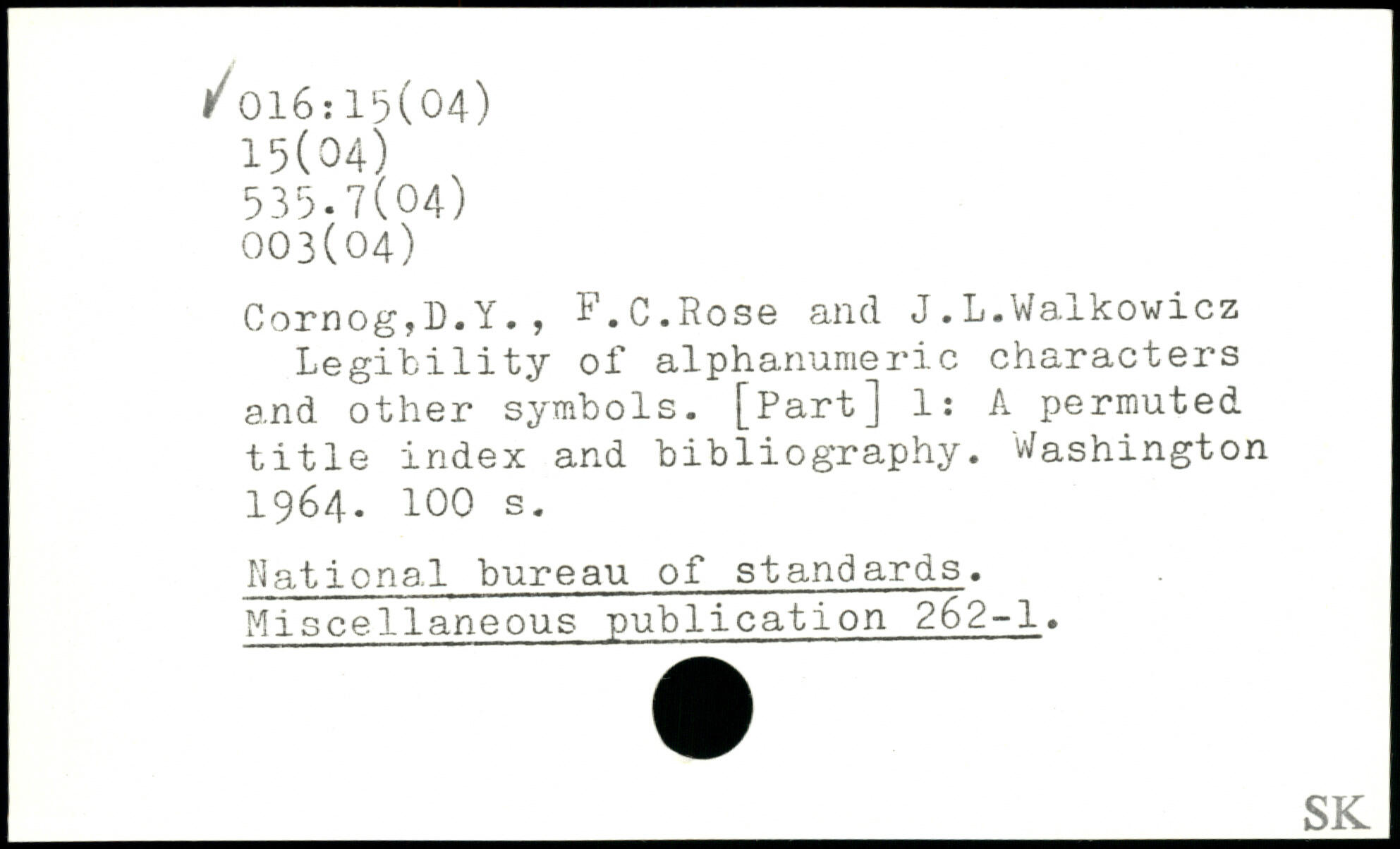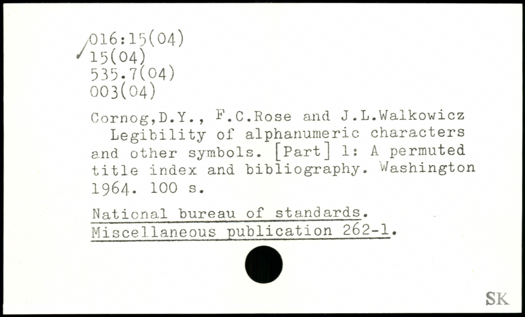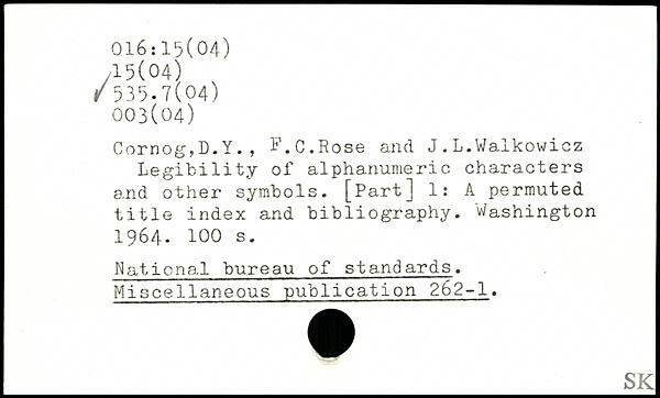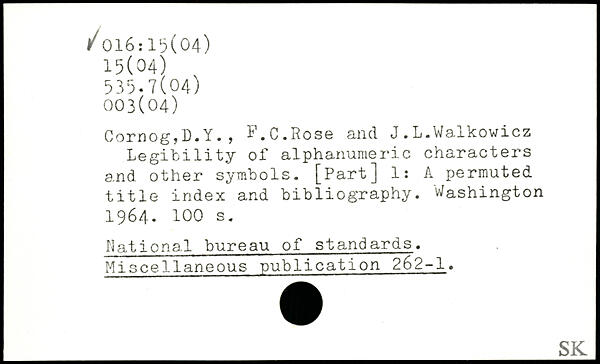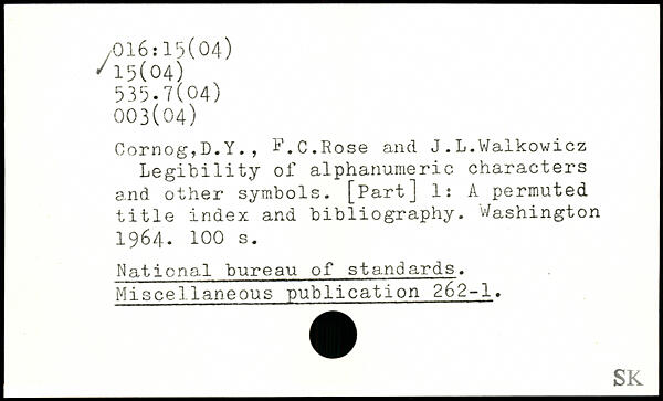 Cornog,D.Y. , l'1. C.Rose and J.L.Walkowicz Legibility of alphanumeric characters and other symbols. [Part] 1: A permuted title index and bibliography.