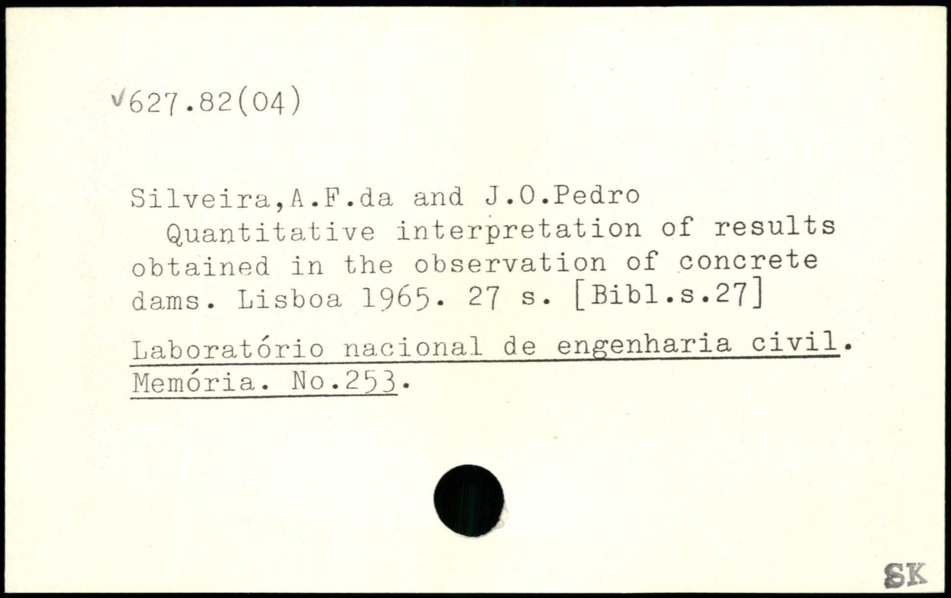 Silveira,A.F.da and J.O.Pedro Quantitative interpretation of results obtained in the observation of concrete dams. Lisboa 1965