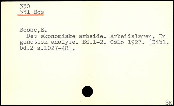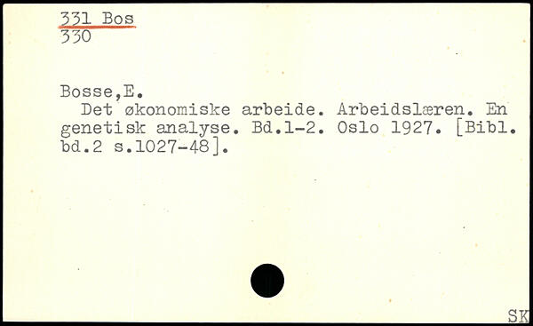Det økonomiske arbeide. Arbeidslæren. En genetisk analyse.