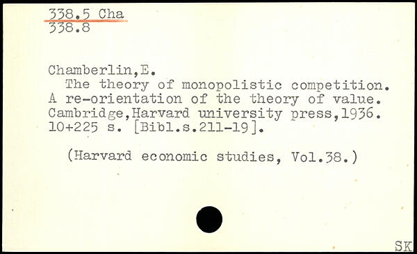The theory of monopolistic competition. A re-orientation of the theory of value.