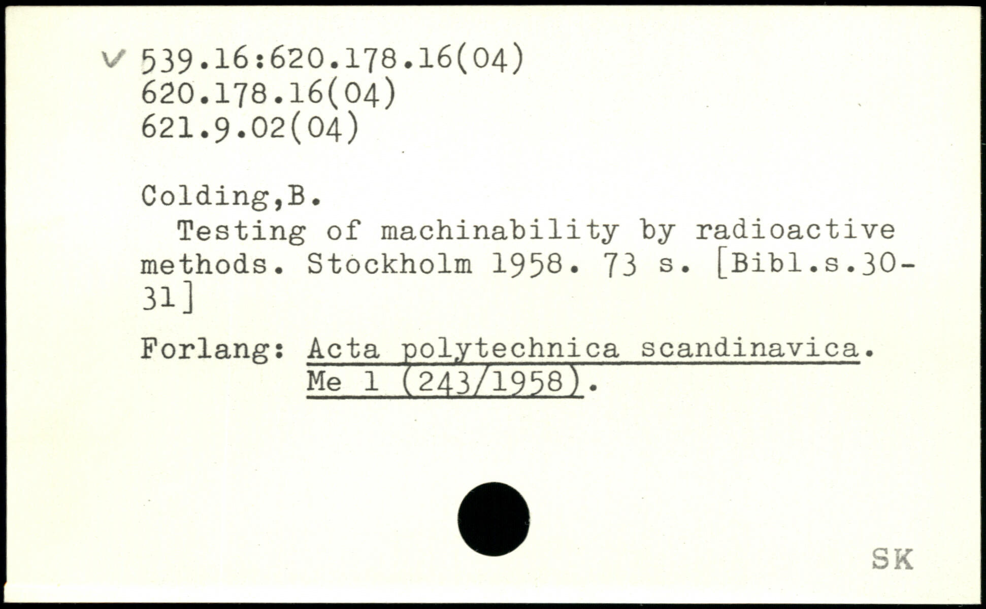 Testing of machinability by radioactive methods.