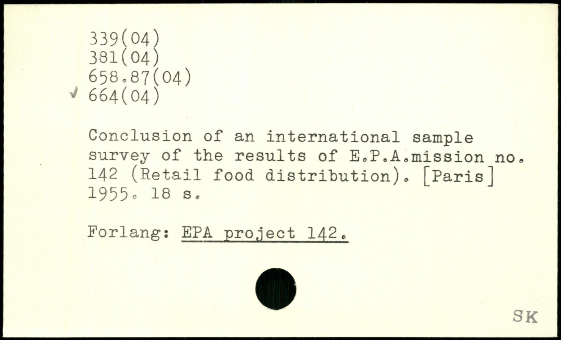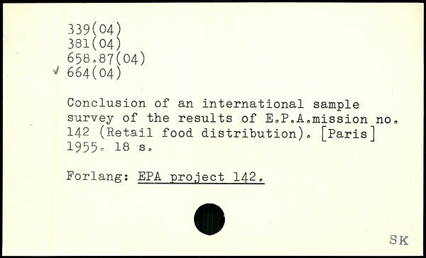 Conclusion of an international sample survey of the results of E,P.Admission no, 142 (Retail food distribution)