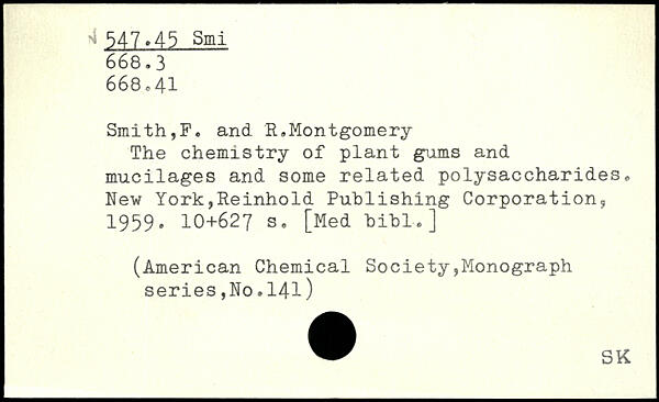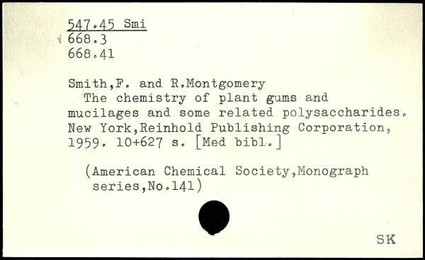 Smith,F, and R.Montgomery The chemistry of plant gums and mucilages and some related polysaccharides