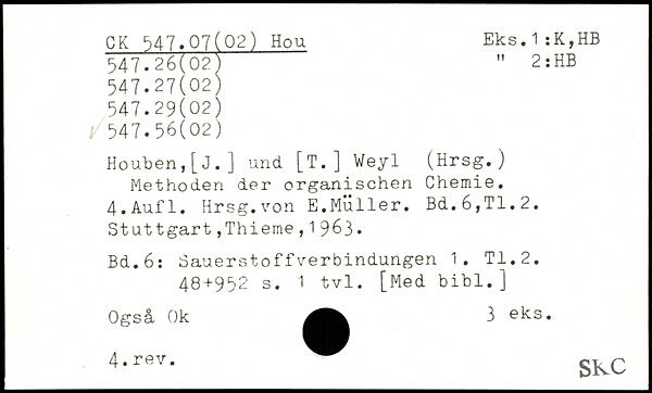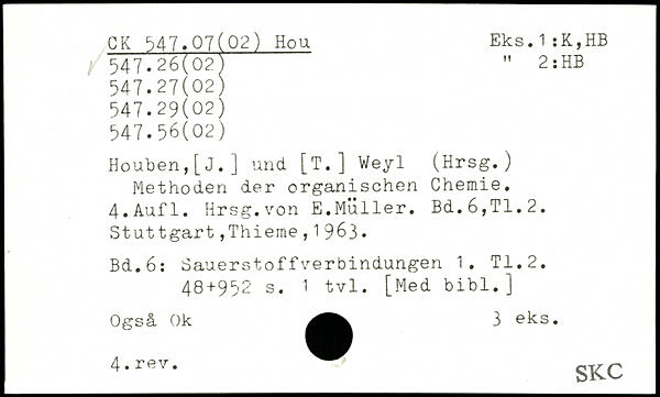 Houben,[J.] und [T.] Weyl (Hrsg.) Methoden der organischen Chemie.