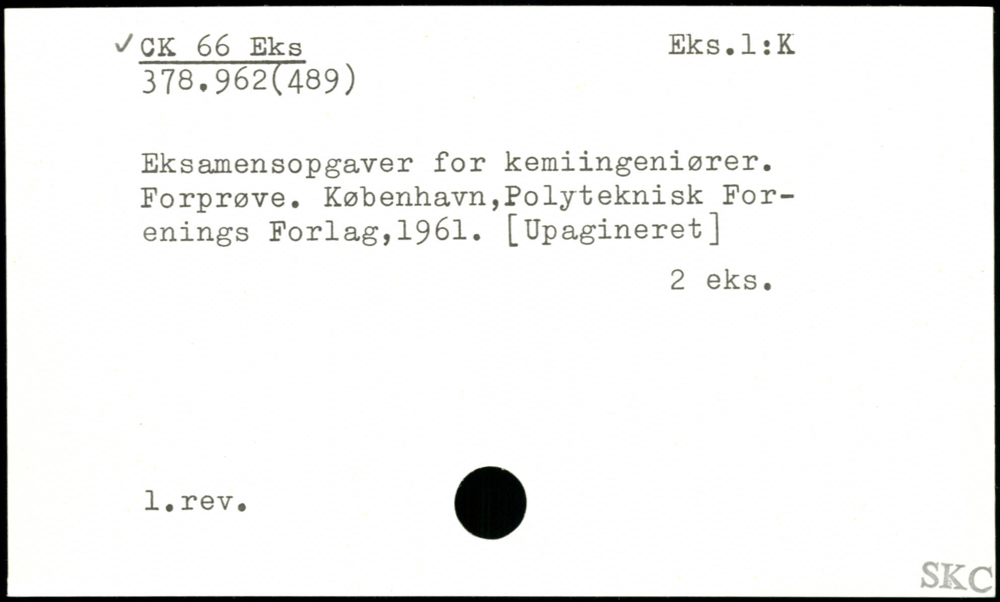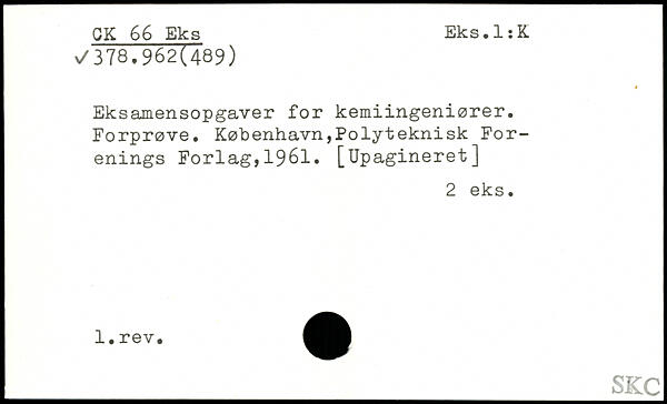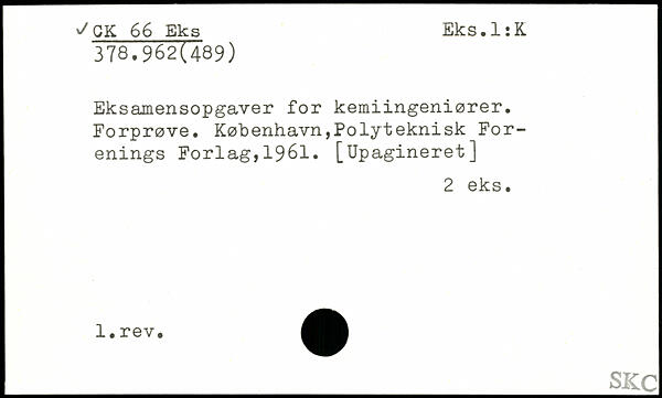 Eksamensopgaver for kemiingeniører. Forprøve.