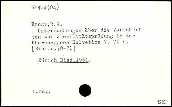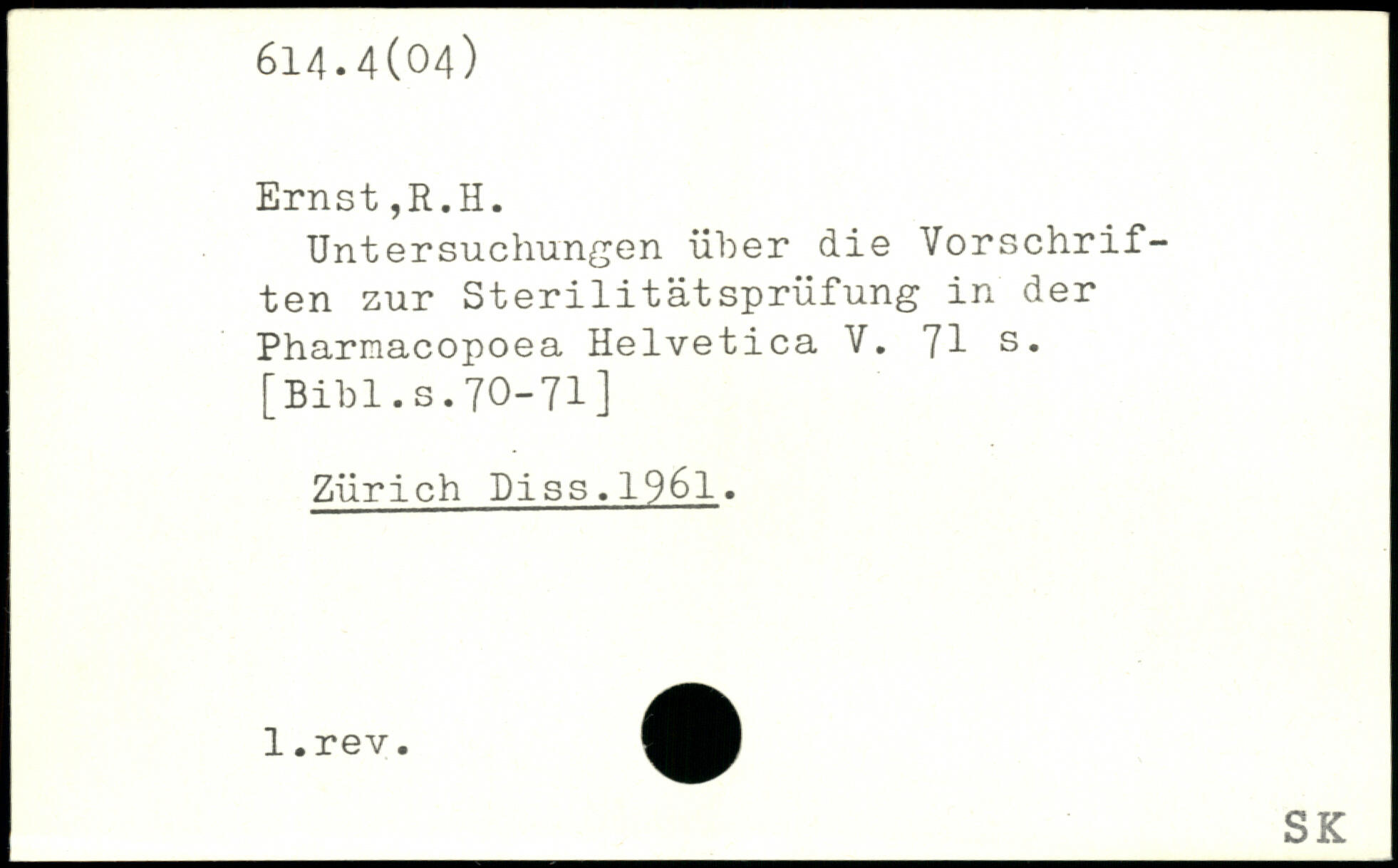 Untersuchungen über die Vorschriften zur Sterilitätsprüfung in der Pharmacopoea Helvetica V.
