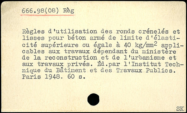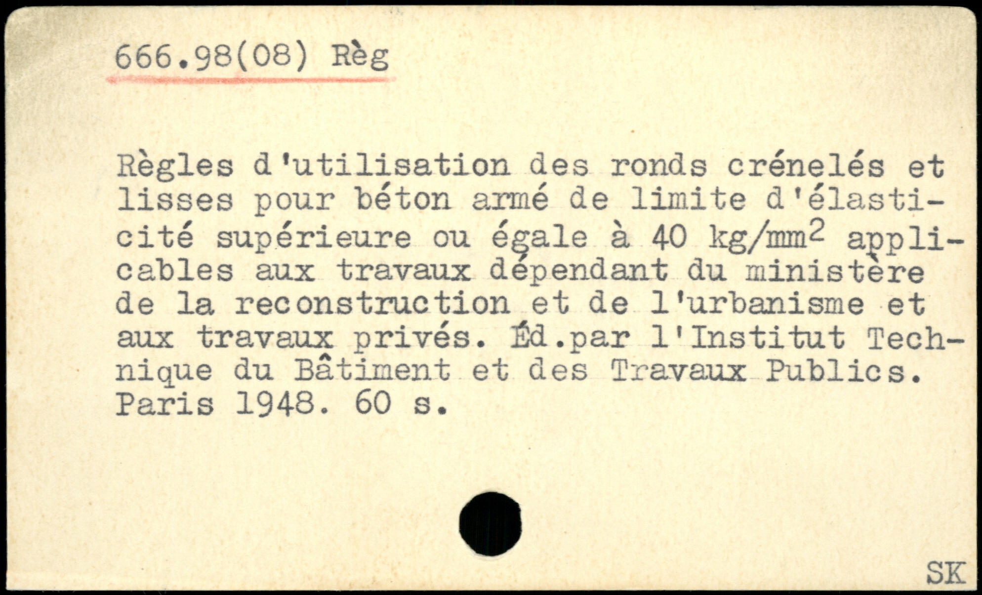 Règles d utilisation des ronds crénelés et lisses pour béton armé de limite d’élasticité supérieure ou é^ale à 40 kg/mm^ applicables aux travaux dépendant du ministère de la reconstruction et de l’urbanisme et aux travaux privés. Éd.par l’Institut Technique du Bâtiment et des Travaux Publics.