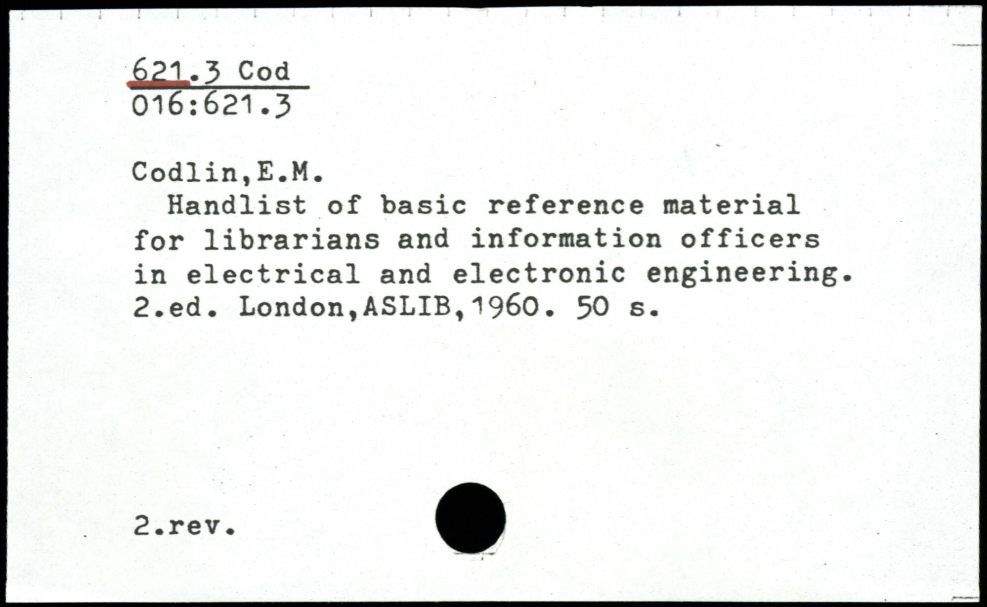 Handlist of basic reference material for librarians and information officers in electrical and electronic engineering.
