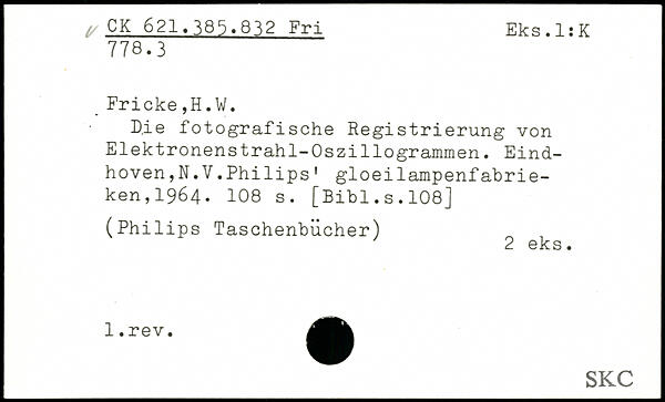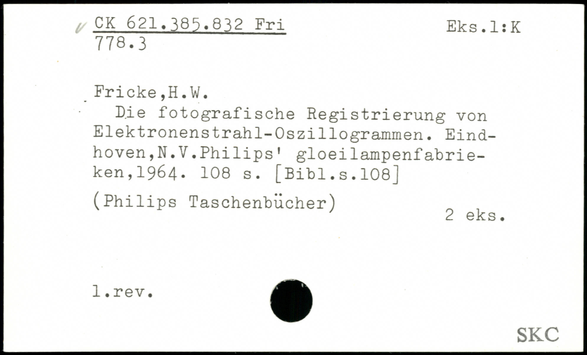 L.ie fotografische Registrierung von Elektronenstrahl-Oszillogrammen. Eindhoven , N. V.Philips 1 gloeilampenfabrie-ken,1964