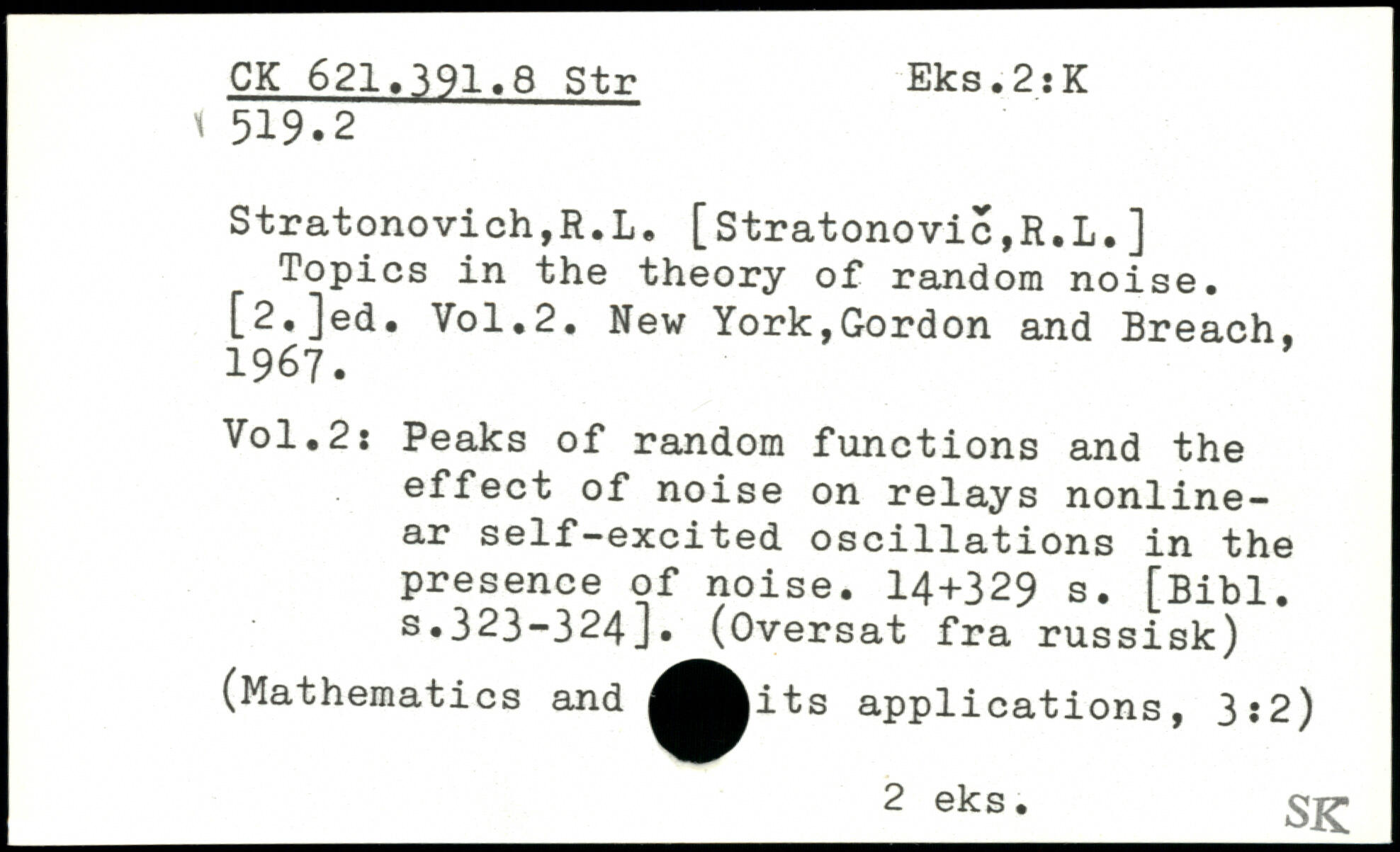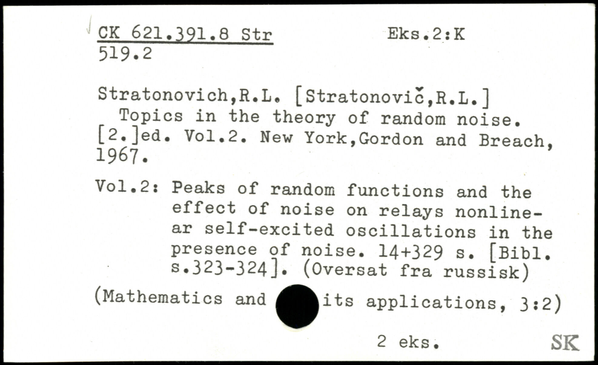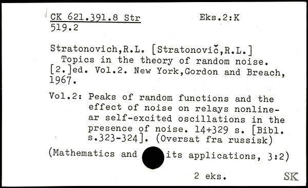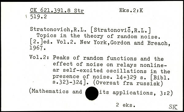 Stratonovich,R.L. [Stratonovic,R.L.] Topics in the theory of random noise. [2,]ed.
