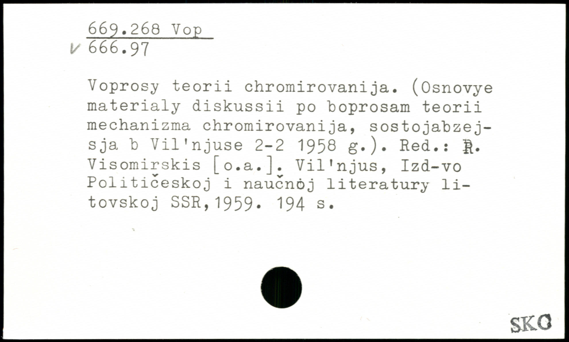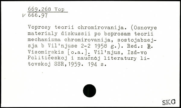 Voprosy teorii ehromirovanija. (Osnovye materialy diskussii po boprosam teorii mechanizma chromirovanija, sostojabzej-sja b Vil'njuse 2-2 1958 g.). Red.ï 1. Visomirskis [o.a.]. Vil’njus, Izd-vo Politiceskoj i nauenöj literatury li-tovskoj SSR,1959.