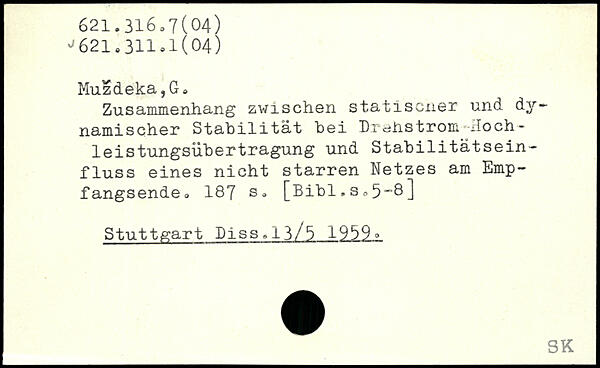 Zusammenhang zwischen statiscner und dynamischer Stabilität bei Drehstrom-Hoch-leistungsübertragung und Stabilitätseinfluss eines nicht starren Netzes am Empfangsende.