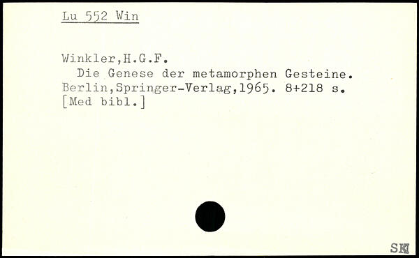 Die Genese der metamorphen Gesteine.