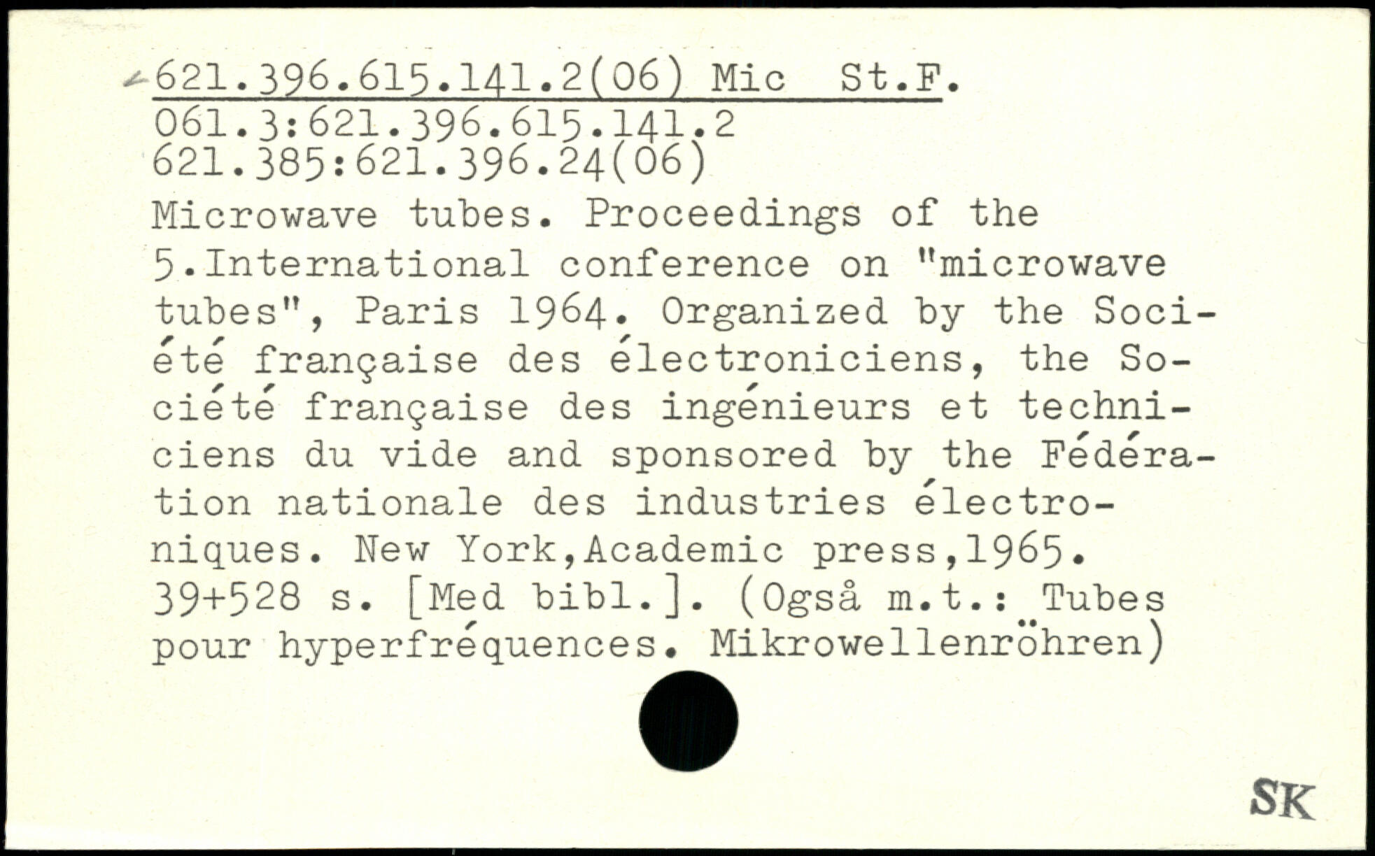 Microwave tûtes. Proceedings of the 5.International conference on ”microwave tubes”