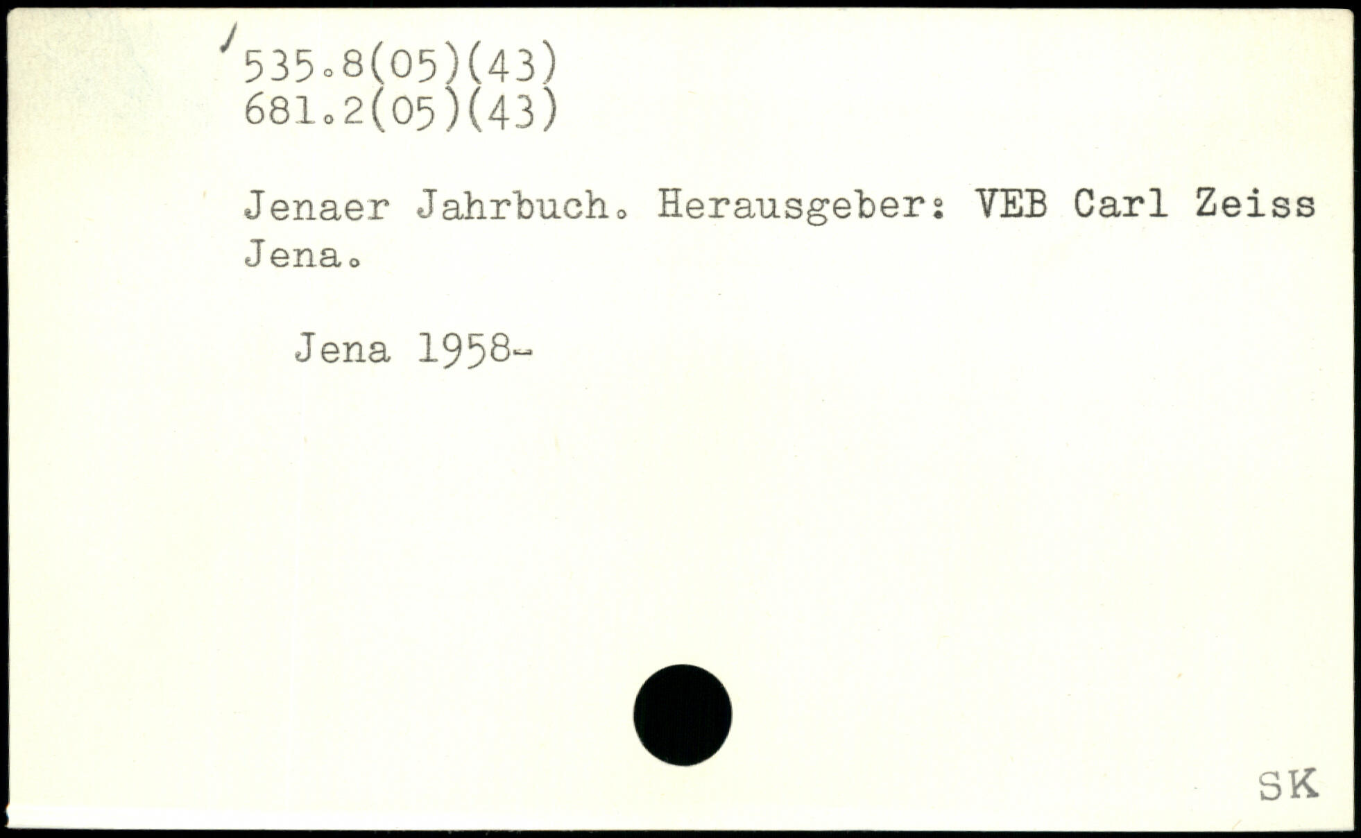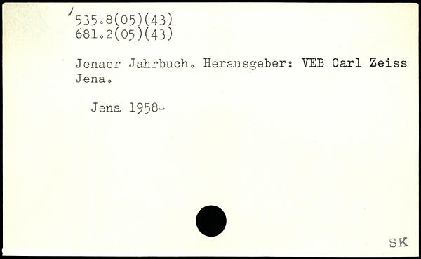 Jenaer Jahrbuch. Herausgebers YEB Carl Zeiss J ena, Jena 1958“
