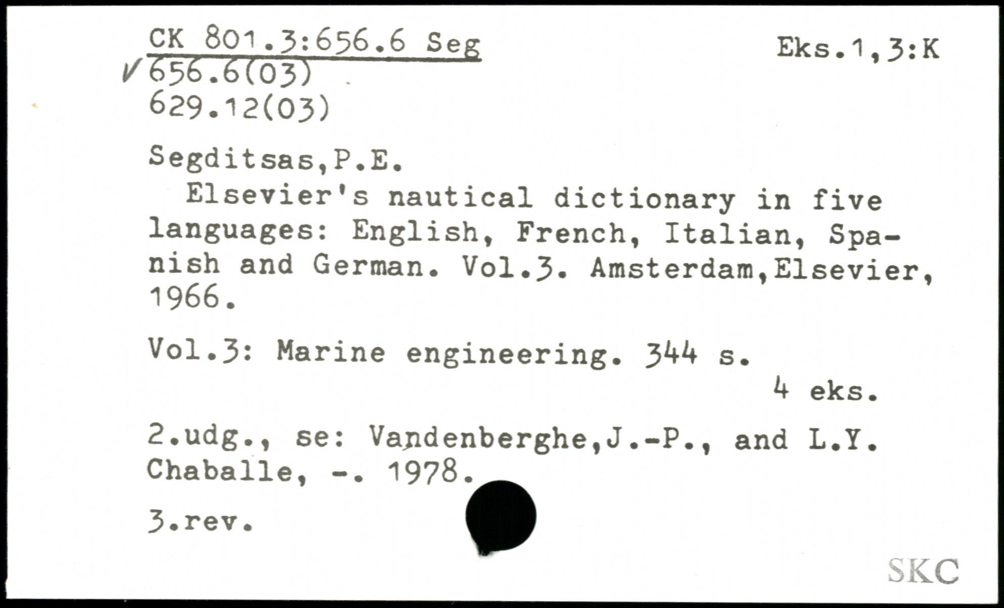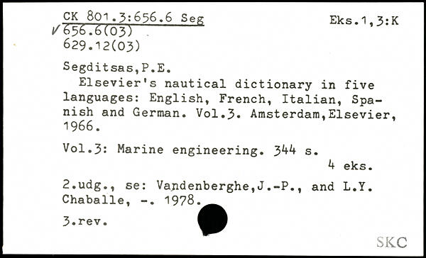 Elsevier's nautical dictionary in five languages: English, French, Italian, Spanish and German. V0I.3.