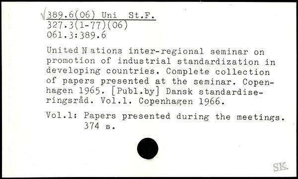 United li ations inter-regional seminar on promotion of industrial standardization in developing countries. Complete collection of papers presented at the seminar.