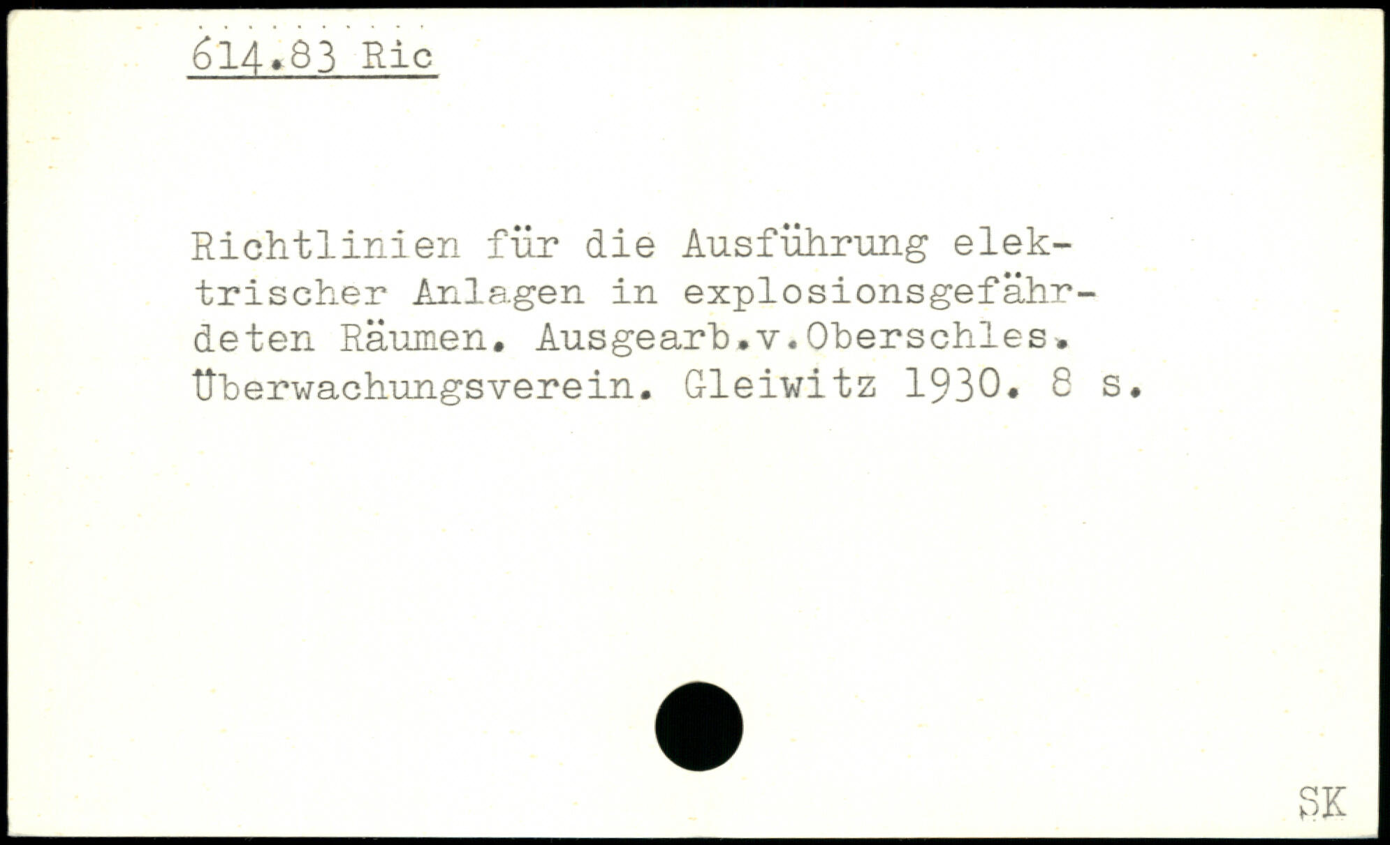 Richtlinien für die Ausführung elektrischer Anlagen in explosionsgefährdeten Räumen. Ausgearh.v.Oherschles. Üherwachungsverein. Gleiwitz 1930.