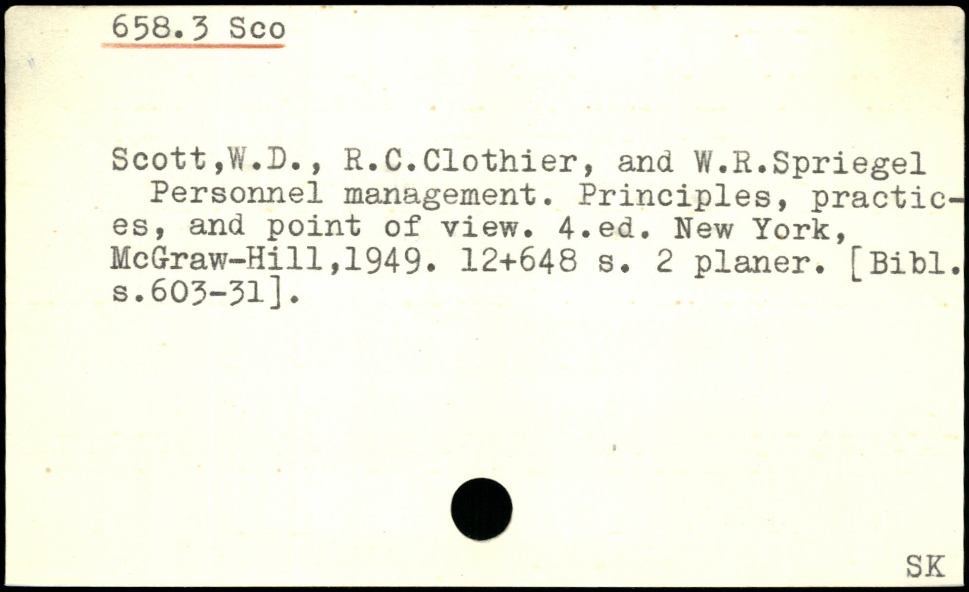 Scott,Vi/.D. , R.C.Clothier, and W.R.Spriegel Personnel management. Principles, practices, and point of view.