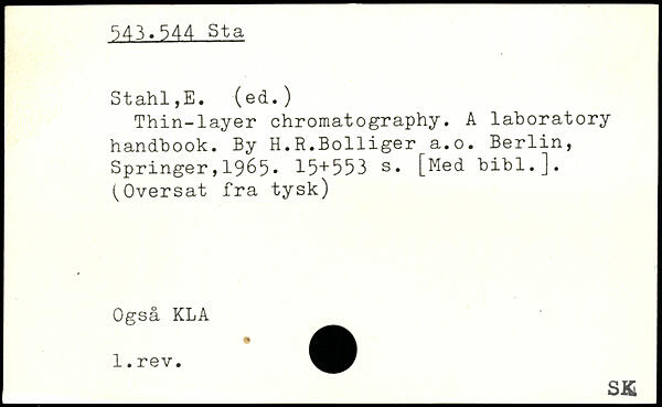 Thin-layer chromatography. A laboratory handbook. By H.R.Bolliger a.o.