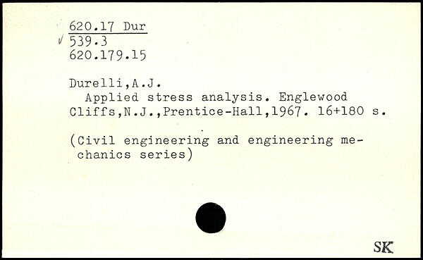 Dure Hi, A. J. Applied stress analysis. Englewood Cliffs,N.J.fPrentice-Hall,1967.