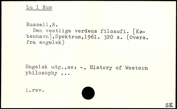 Den vestlige verdens filosofi. [København] , Spektrum, 1961.
