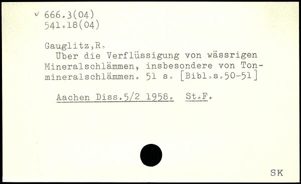 Uber die Verflüssigung von wässrigen Mineralschlämmen, insbesondere von Ton-mineral schlämmen