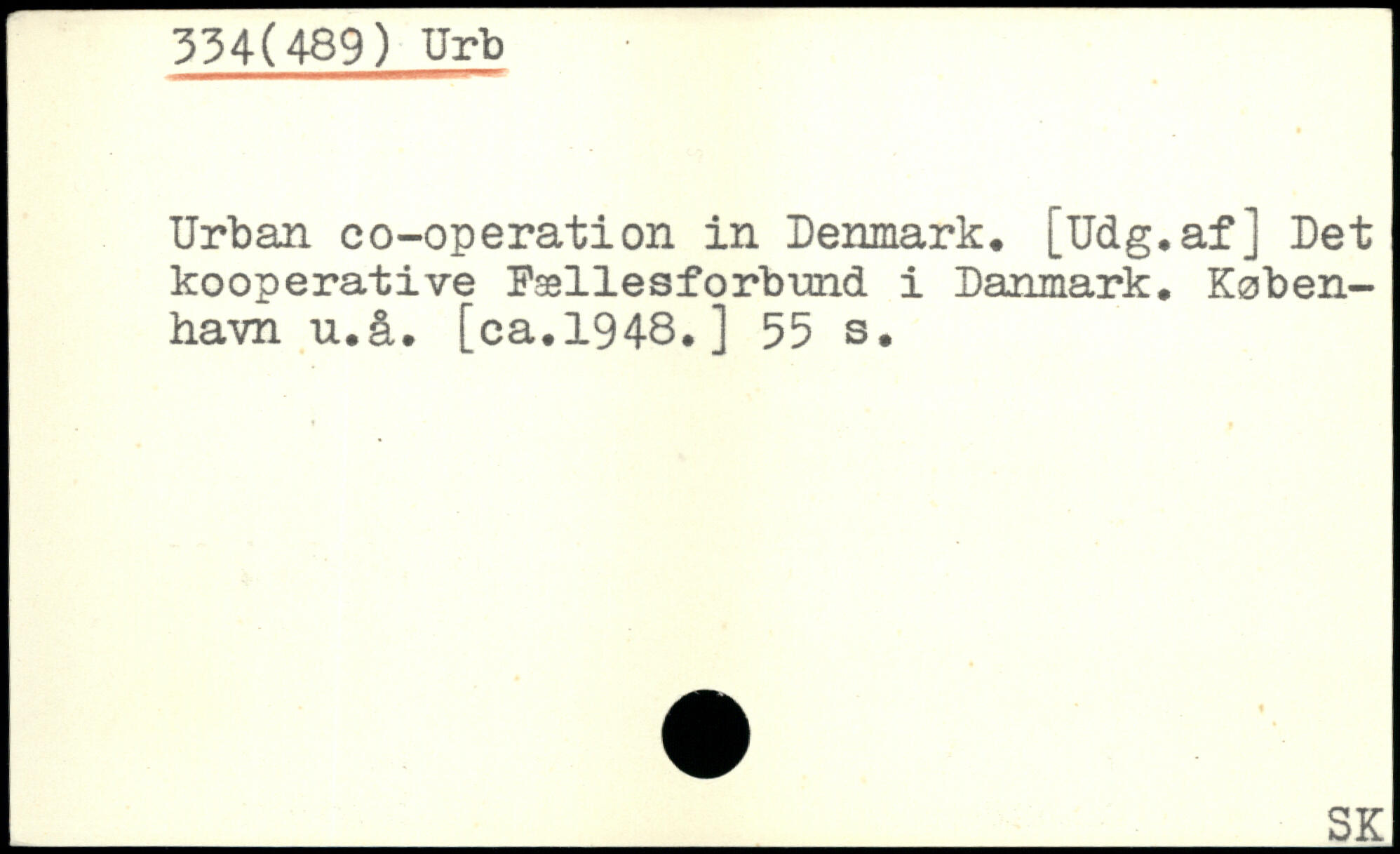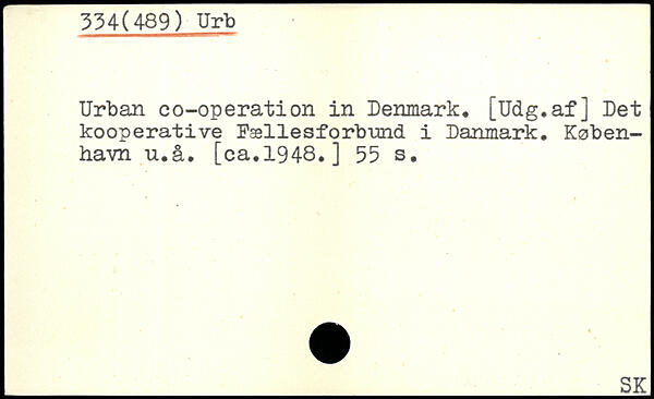 Urban co-operation in Denmark. [Udg.af] Det kooperative Dællesforbund i Danmark. København u.å. [ca.1948.]
