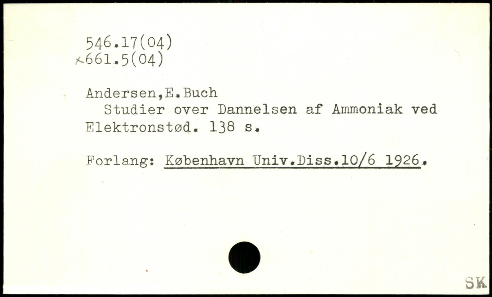 Andersen,E,Buch Studier over Dannelsen af Ammoniak ved Elektronstød.