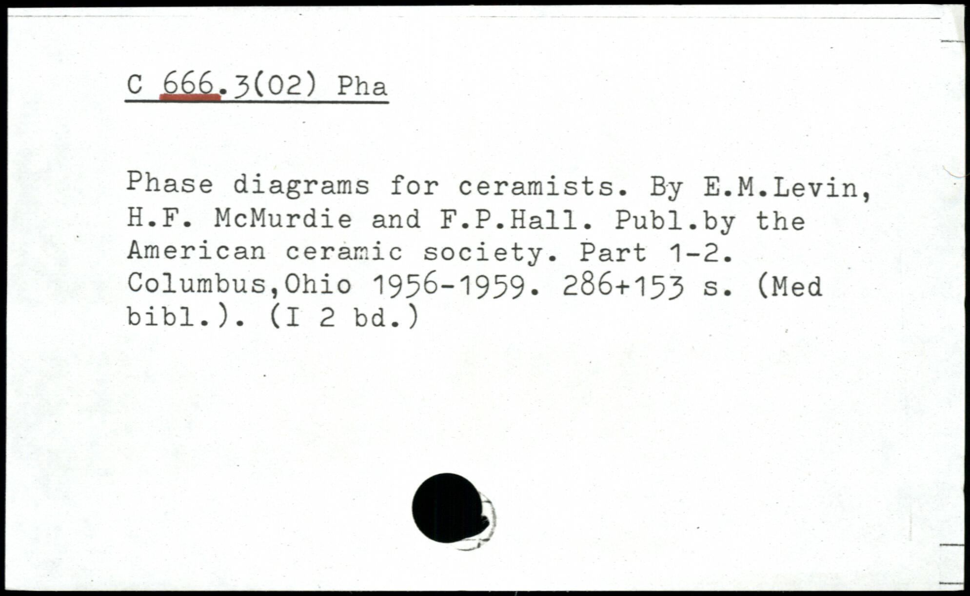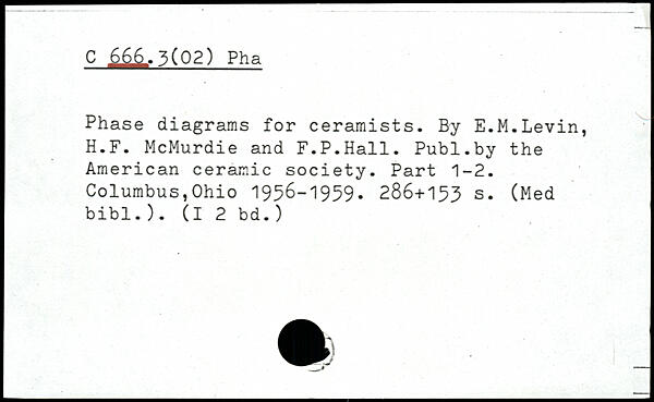 Phase diagrams for ceramists. By E.M.Levin, H.F. McMurdie and F.P.Hall.