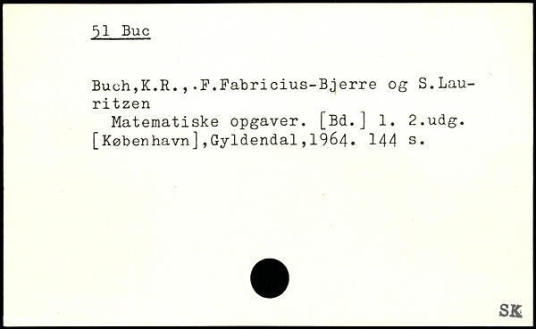 Buch,K.R.,.F.Fabricius-Bjerre og S.Lau-ritzen Matematiske opgaver. [Bd.] 1.