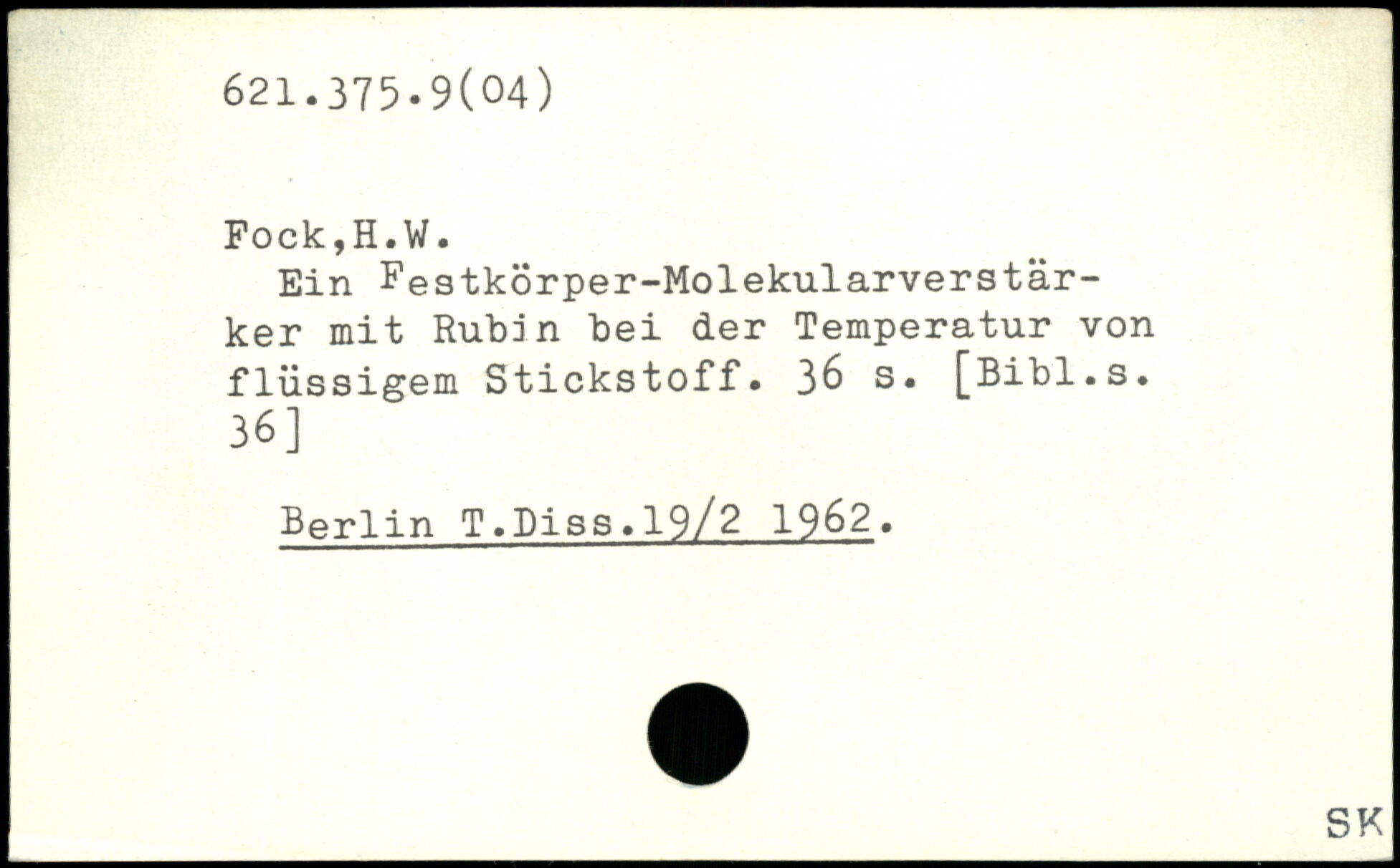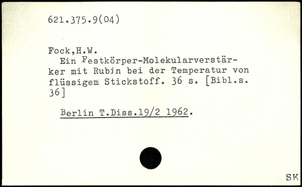 Ein Festkörper-Molekularverstärker mit Rubin bei der Temperatur von flüssigem Stickstoff.