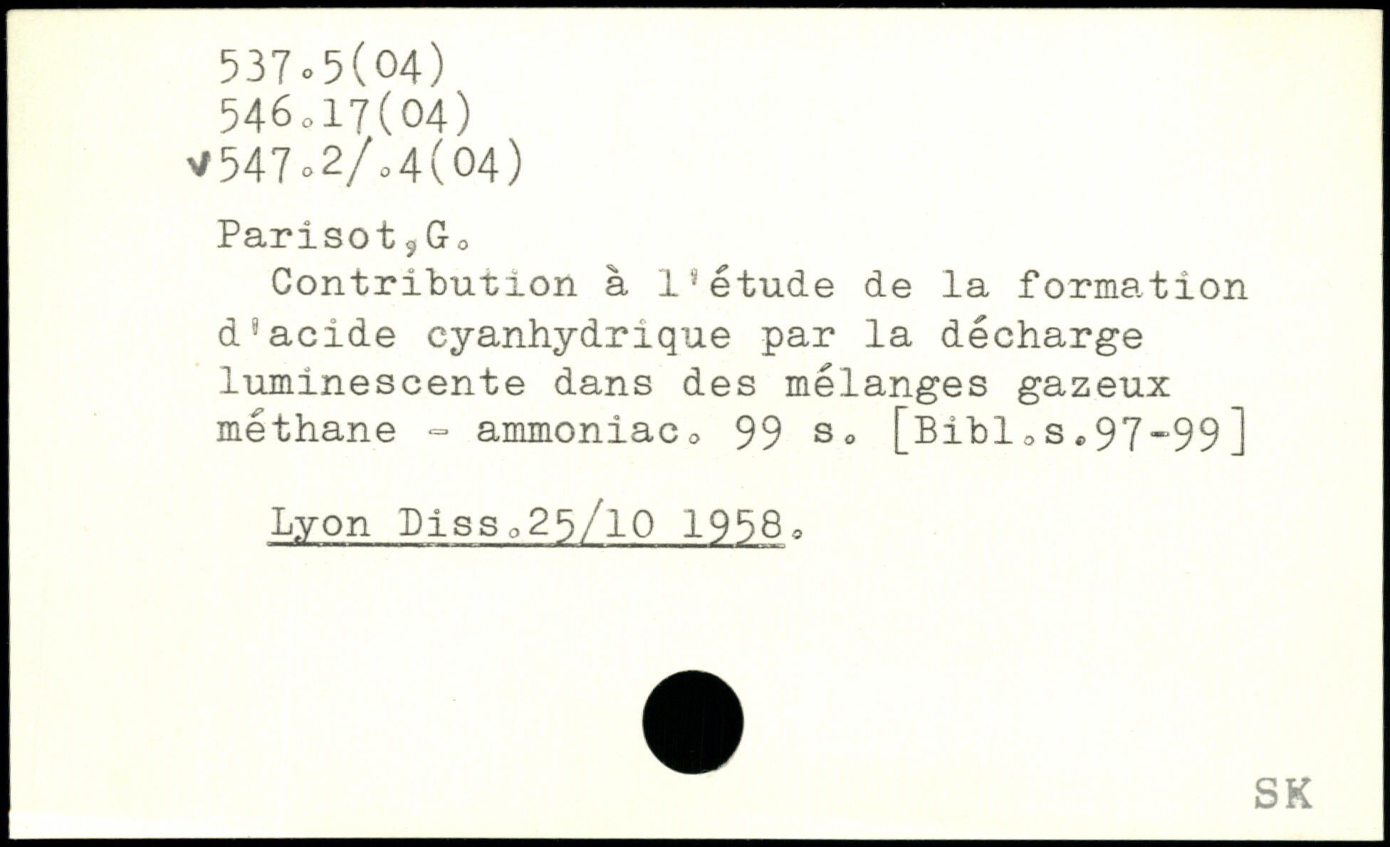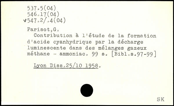 Contribution à Is étude de la formation diacide cyanhydrique par la décharge luminescente dans des mélanges gazeux méthane - ammoniac,, 99