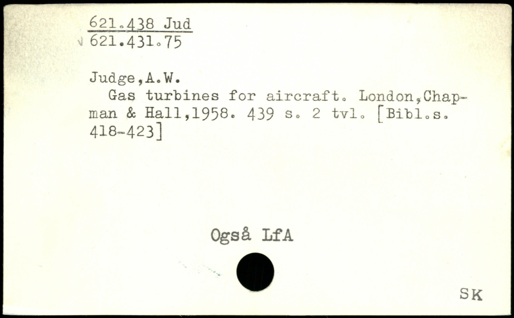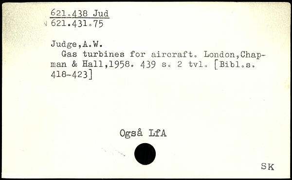 Gas turbines for aircraft, London,Chapman & Hall,1958. 439 So 2 tvl, [Bibl,s. 418-423] Ogsfi. IfA