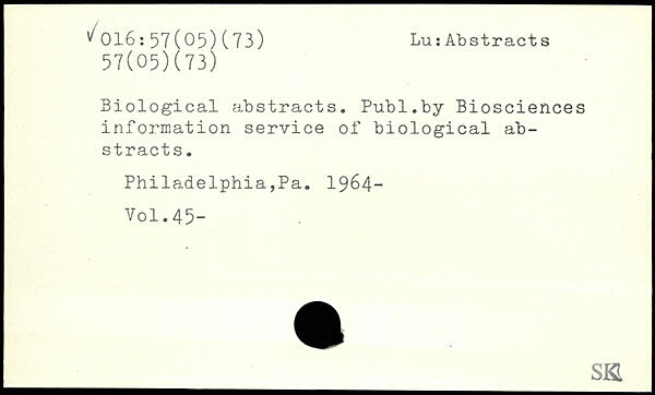 UDK: 016:57(05)(73), 57(05)(73)